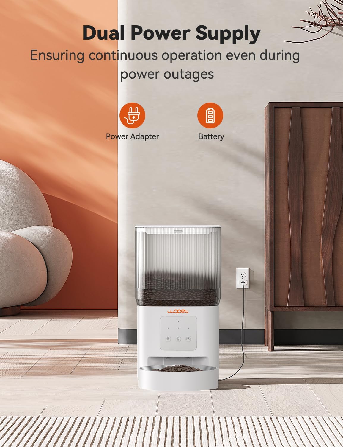 • Smart APP Control: Remotely set times to feed your pet automatically, with WOPET wifi cat feeder you can set 1-10 meals per day and up to 8 portions of dry food per meal depending on your pet's needs. Allowing you to program and monitor your pet's meals anywhere anytime through the WOPET Life App for iOS and Android phones. Compatible with 2.4G.
