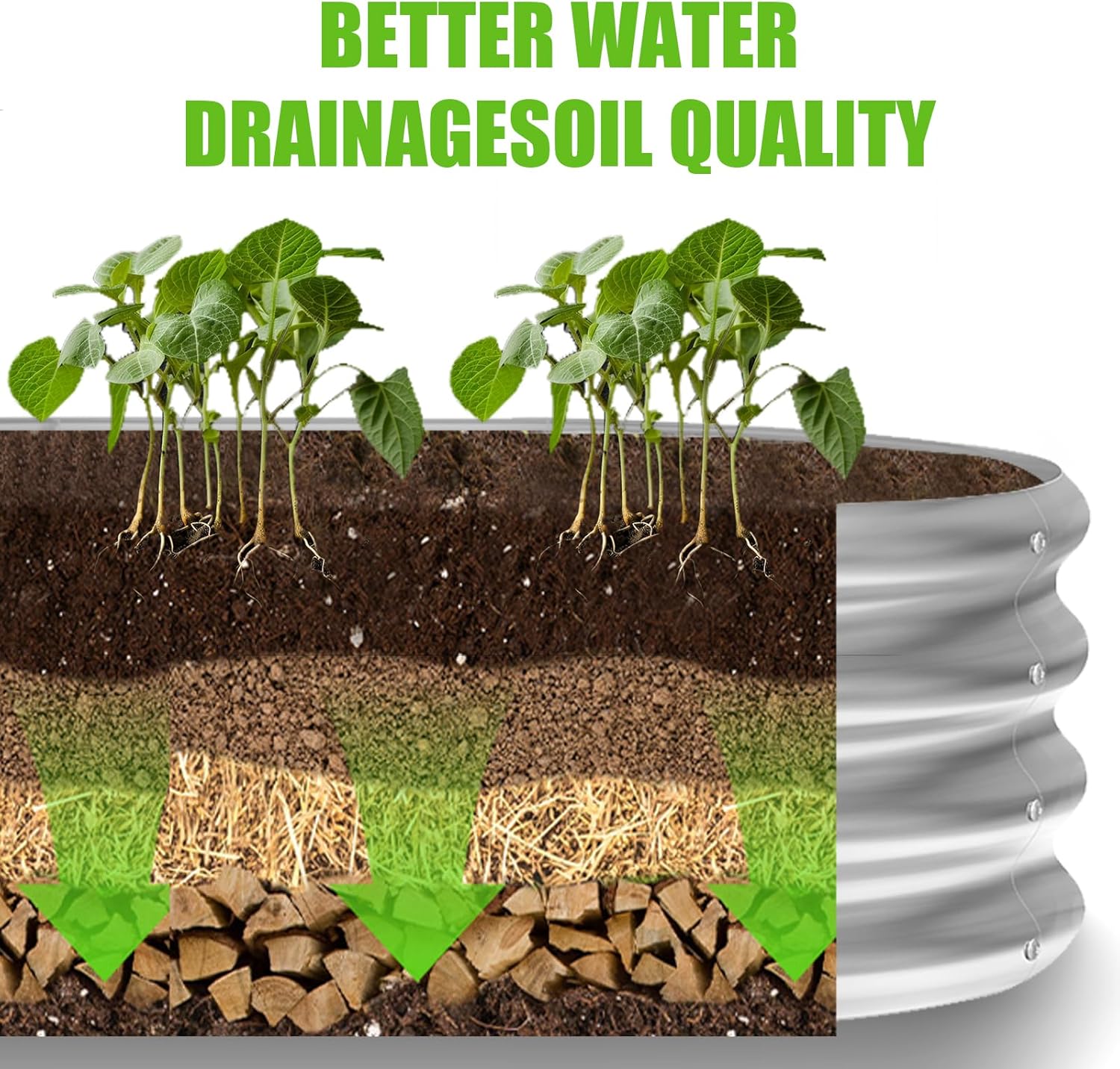 Land Guard 8ft Galvanized Raised Garden Bed Kit, Raised Garden Boxes Outdoor, Oval Metal Raised Garden Beds for Vegetables, Silver,108 Gallon Capacity(with 10 Connecting rods)