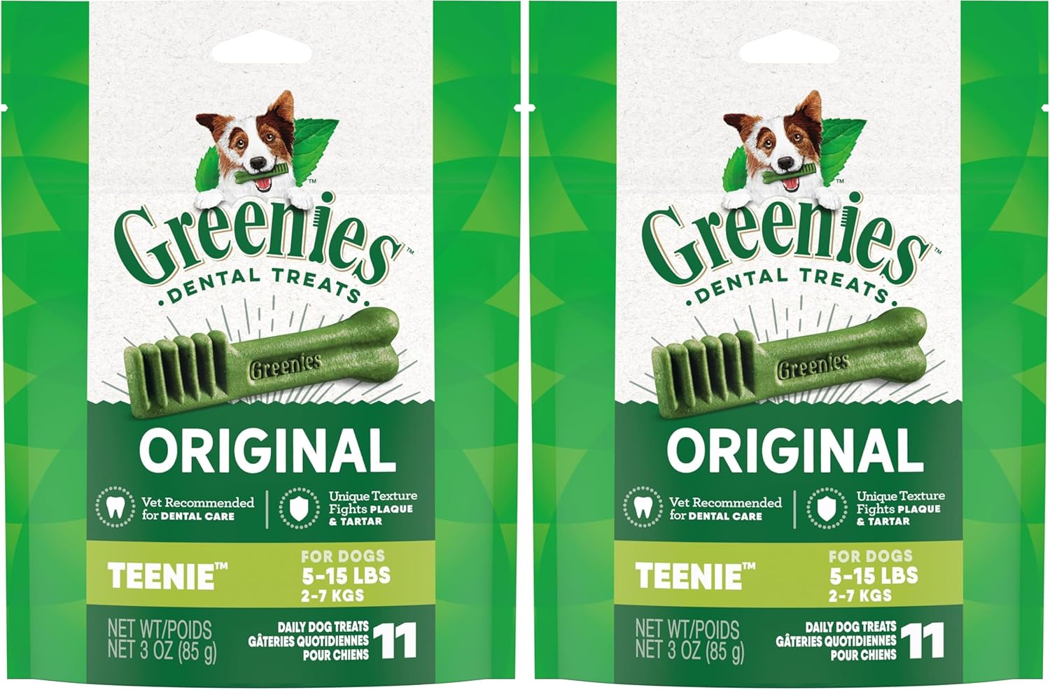 Greenies Original Teenie Natural Dental Care Dog Treats, 3 oz. Pack (11 Treats) (Pack of 2)