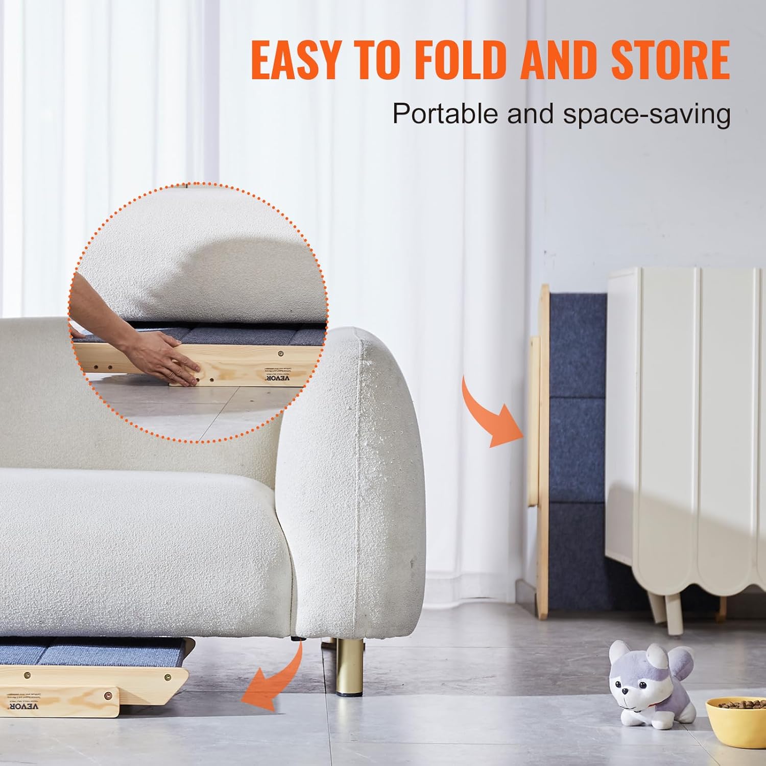 VEVOR Wood Pet Stairs/Pet Steps, 2-in-1 Foldable Wooden Dog Stair for Beds, Sofa and Cars, Dog Stairs & Ramp with 3 Steps for Small Medium Large Pet, up to 150 lbs
