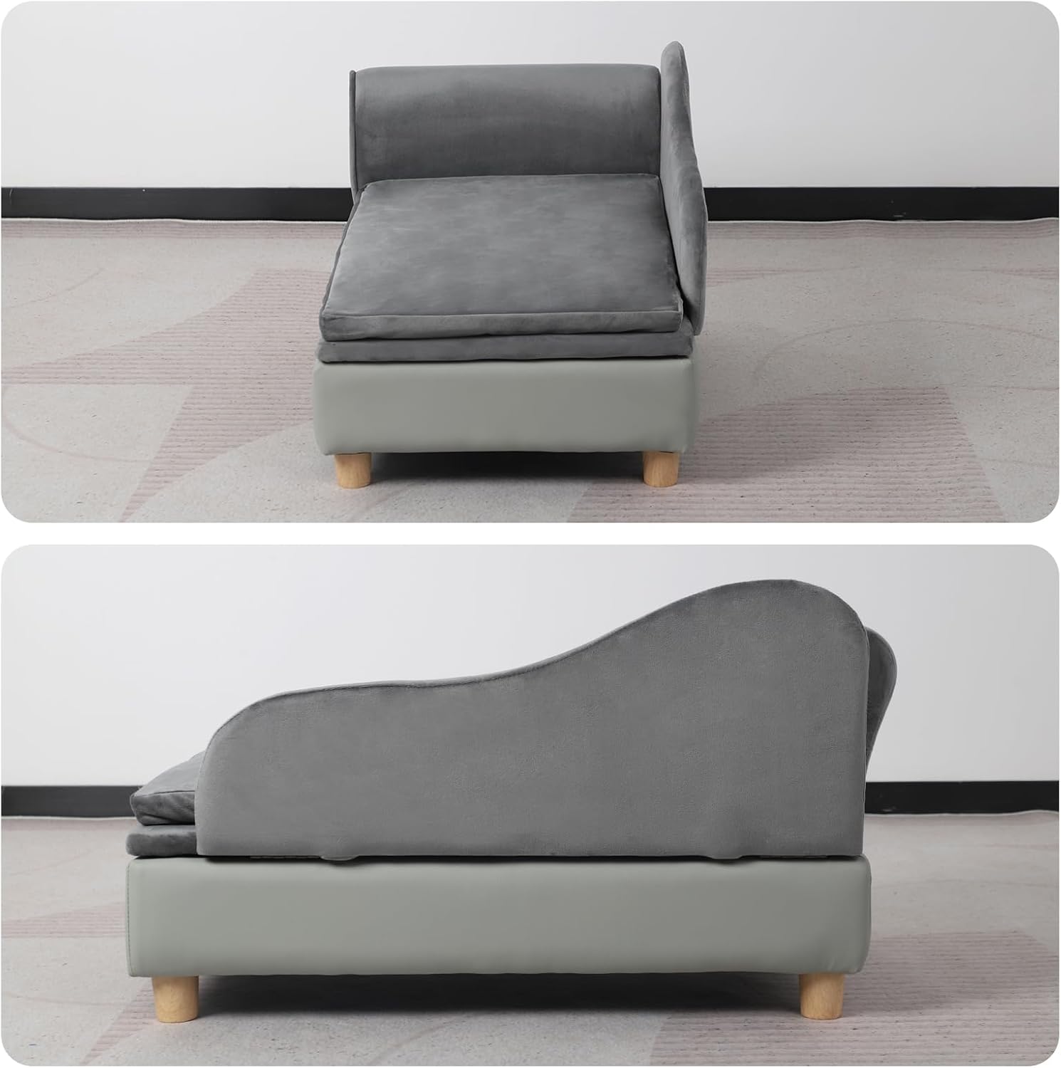 Pet Bed Sofa, Puppy Bed with Storage, Small Dog Couch with Removable & Washable Cushion, Comfy Pet Couch Bed for Cats & Puppy (Gray)
