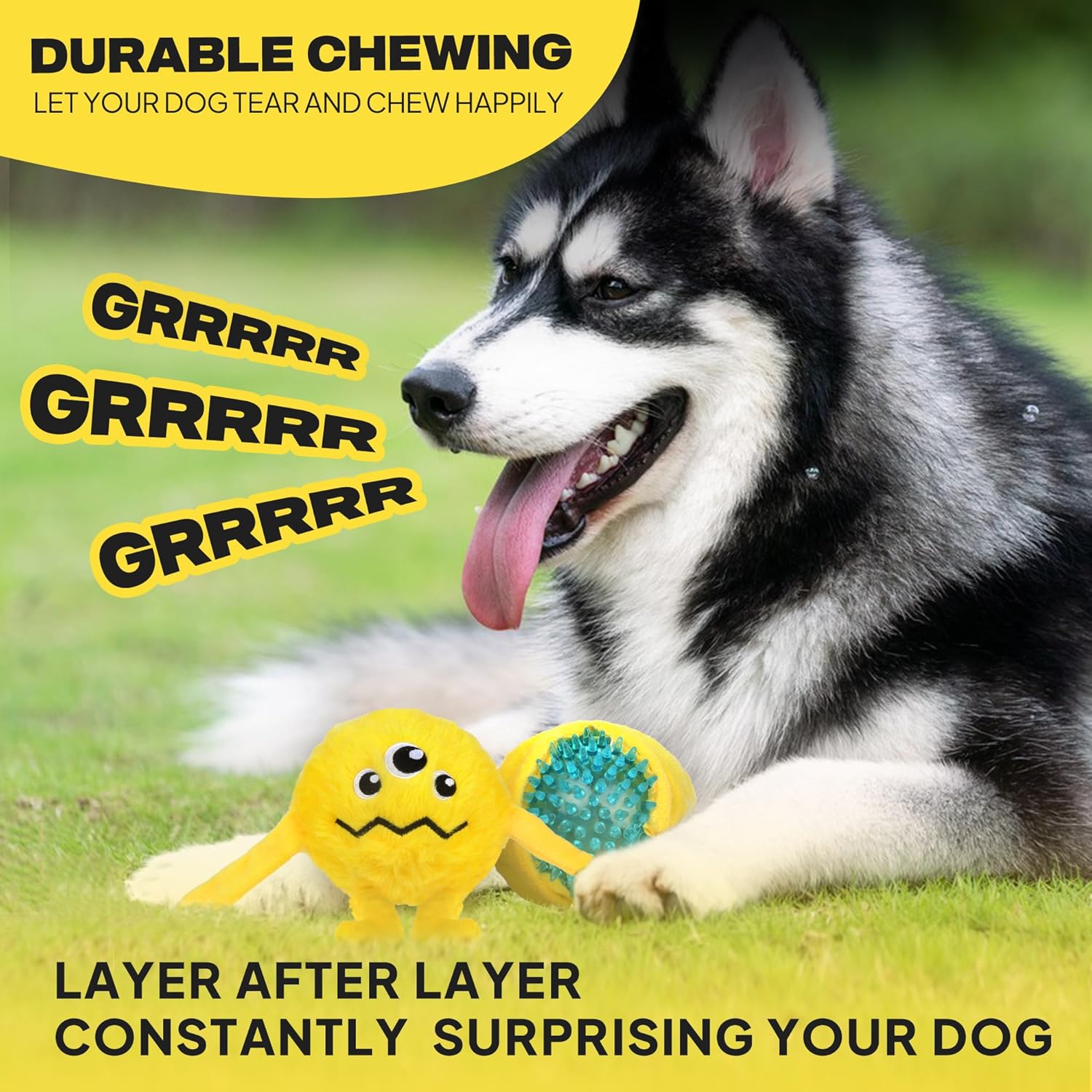 • 【3-IN-1 Destroy To The Fullest】:This Dog chew toys for aggressive chewers are designed to be dog chewers and can be destroyed to the fullest. This squeaky dog chew toys features a unique design that allows you to tear apart the toy and reveal another toy inside. Rip this dog chew toys open to reveal other monsters with different expressions. There is also a squeaking dog toy ball for aggressive chewers inside