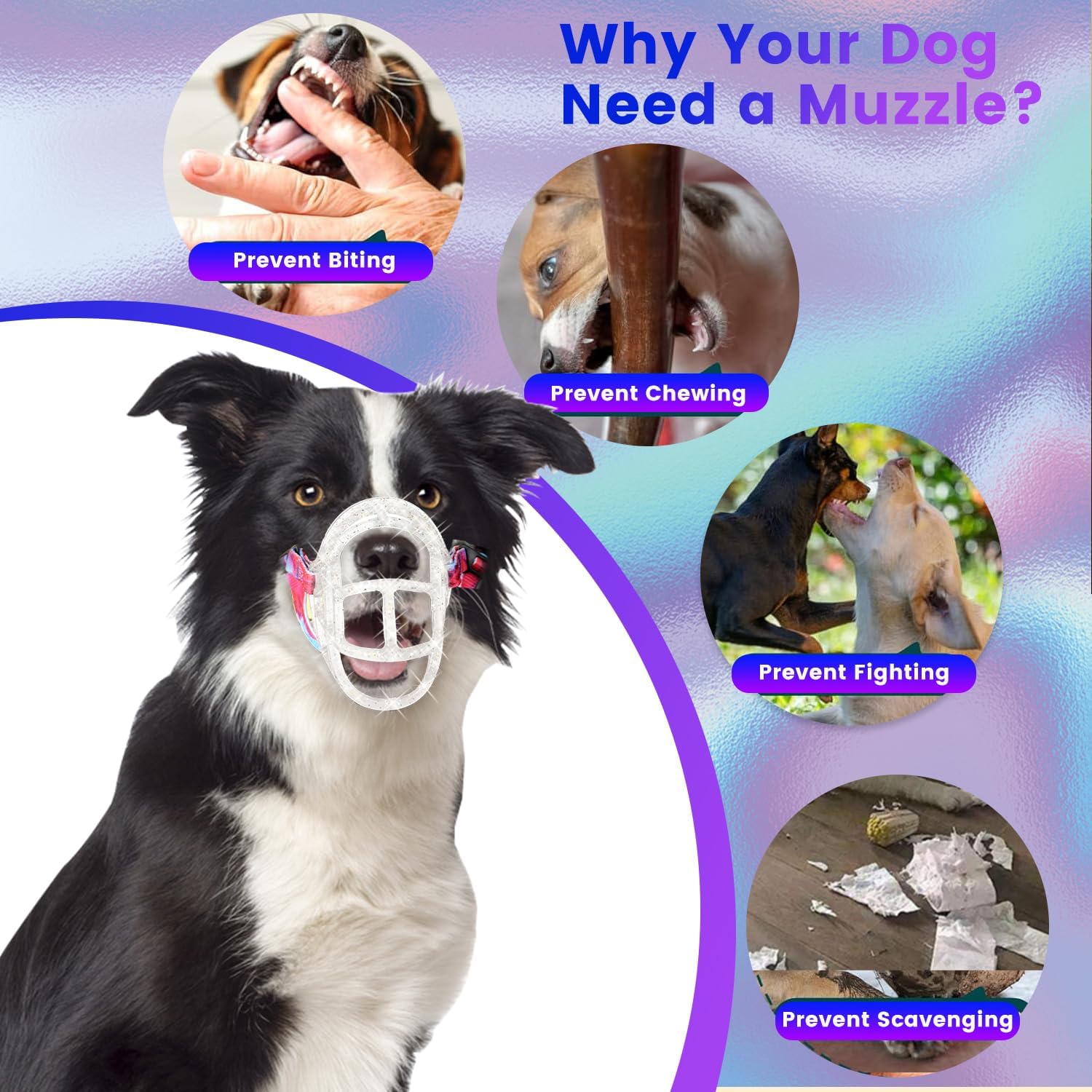 • Stable & Adjustable: This dog muzzle has two additional safety loops, which can be connected to your dog's regular collar. This is a more sturdy anti-scratch design. Adjustable straps at neck and head helps you to adjust the tightness at will.