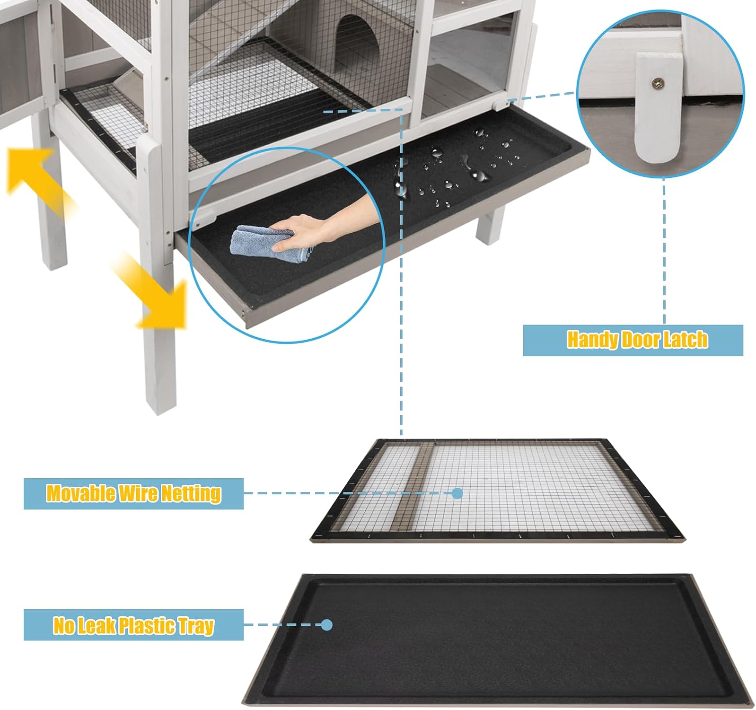 • 🐹【Easy Clean with Bottom Tray】Our hamster cages large are upgraded with a 2” Deeper plastic tray which is sturdy and durable enough to hold more shavings. A removable tray with a leak-proof can be simply pulled out to clean the litter or bedding, with two wooden locks to prevent the tray from sliding out.