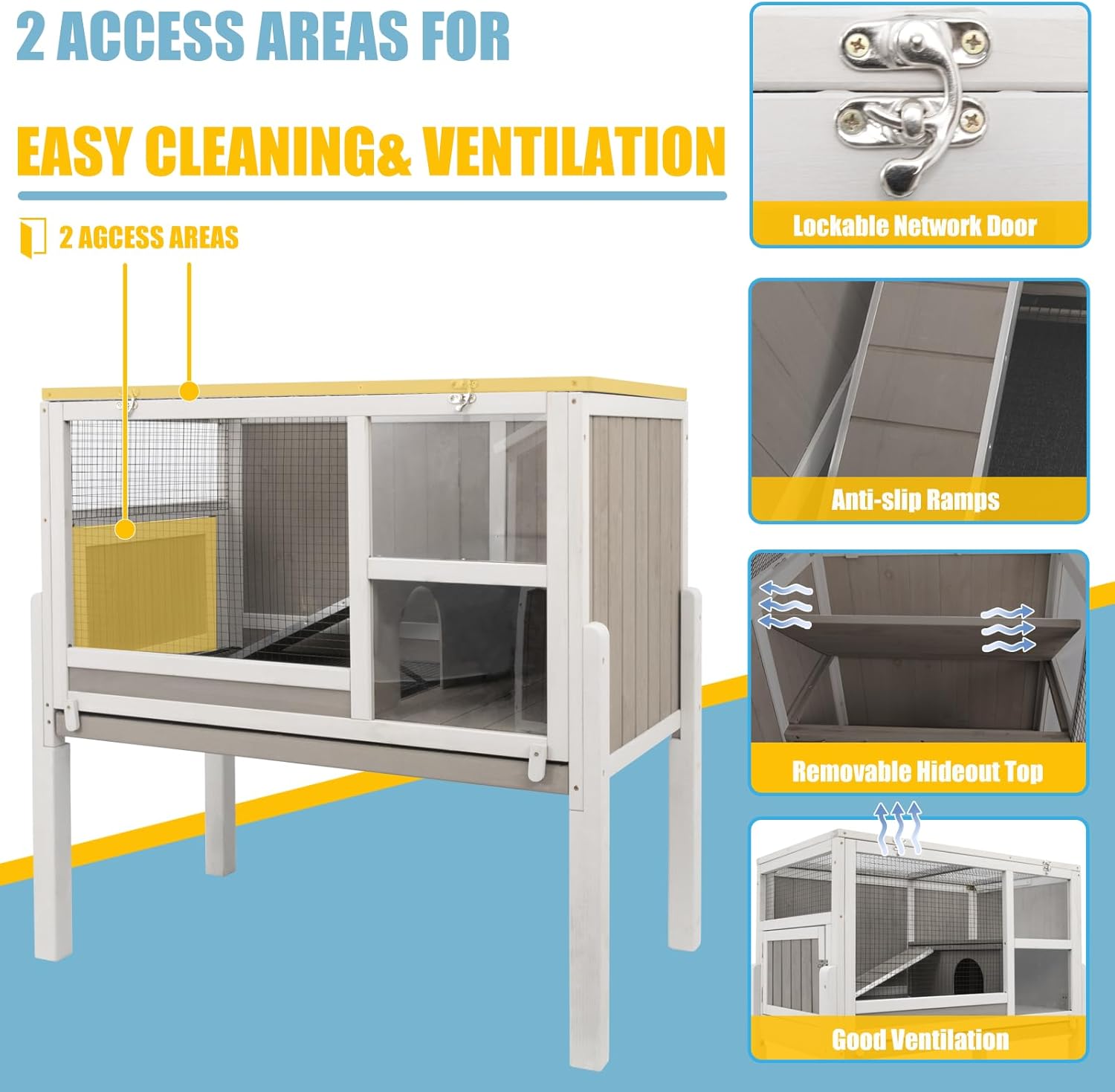• 🐹【Reversible Cooling Panel】The bunny house features a reversible cooling panel to ensure your pets' comfort during hot weather. It can be flipped to provide extra insulation during colder months. The secure, lockable door on these guinea pig and bunny cages ensures your pets' safety at all times. Easily accessible for all your pet housing needs.