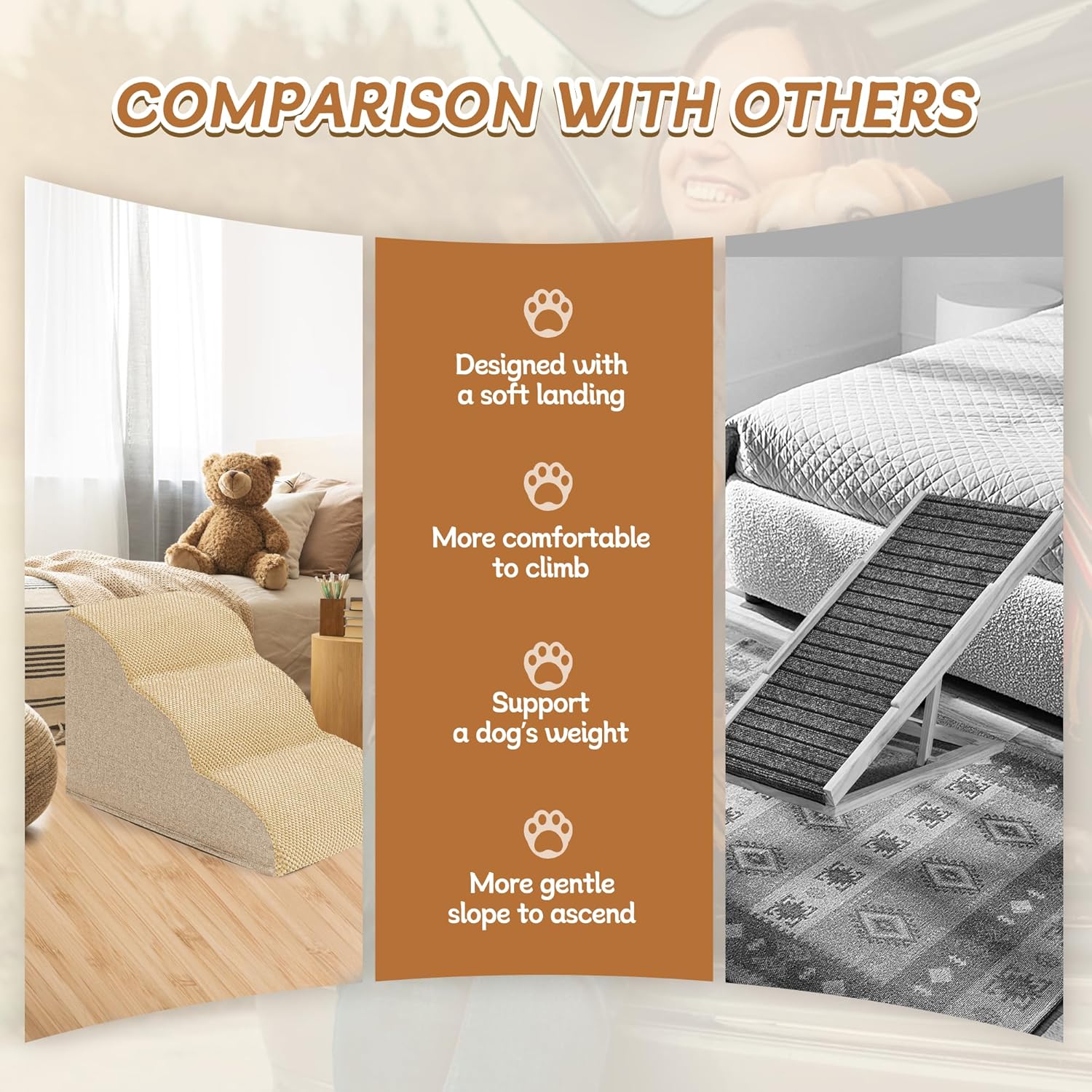 • 33D REBOUND HIGH-DENSITY FOAM: Our 33D foam delivers 63% faster rebound vs standard foam with enhanced weight capacity. Perfect for puppies, senior dogs, and pets recovering from surgery to access beds/couches safely. Dual-purpose as cat stairs for multi-pet households