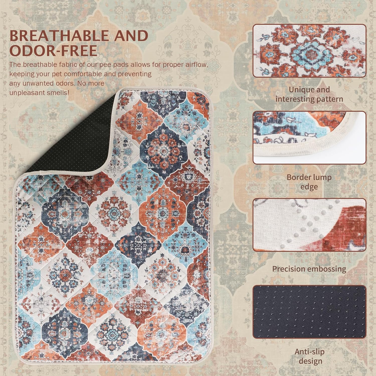 • 【Fashionable and Non-Slip】Our bohemian-print design adds a natural touch to the potty pads for dogs, giving your room a warm, casual vibe. And the non-slip bottom design makes the pet pee pads can achieve a certain fixed effect, you can put it anywhere you want. Soft and non-slip material makes it safer for dogs to use the pads.