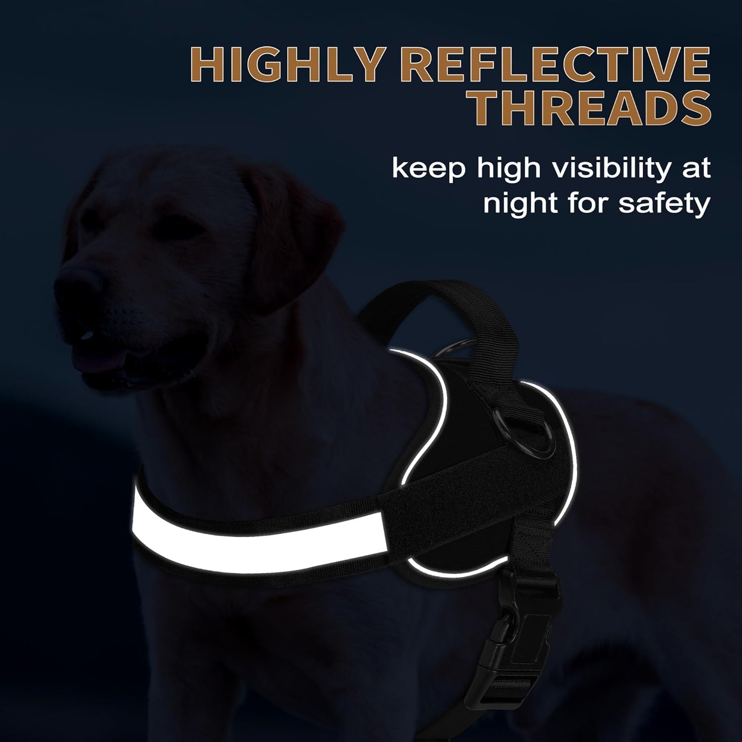 Haapaw Essential Dog Harness, No Pull Pet Vest with 3 Leash Clips, No Choke, Reflective, Adjustable and Padded, for Easy Walking and Training for Large Dogs(XL, Black)
