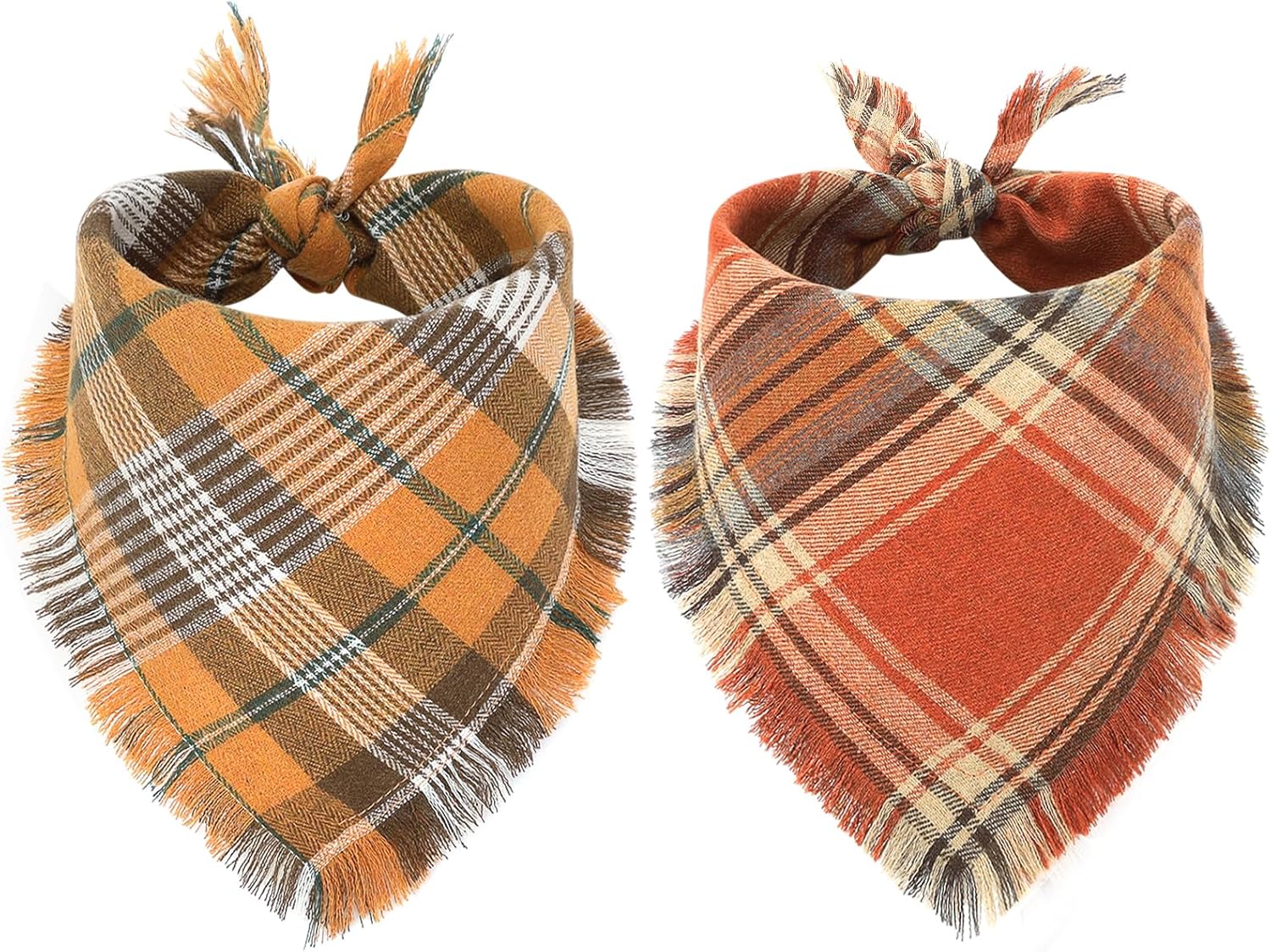 • INTERESTING TWO-PACK SET - Includes one yellow plaid dog bandana and one orange plaid dog bandana. The classic colors and seasonal designs add a festive touch to any fall celebration. These thanksgiving dog bandanas make great gifts for pets, allowing them to join in the autumn fun and make your festivities even more memorable