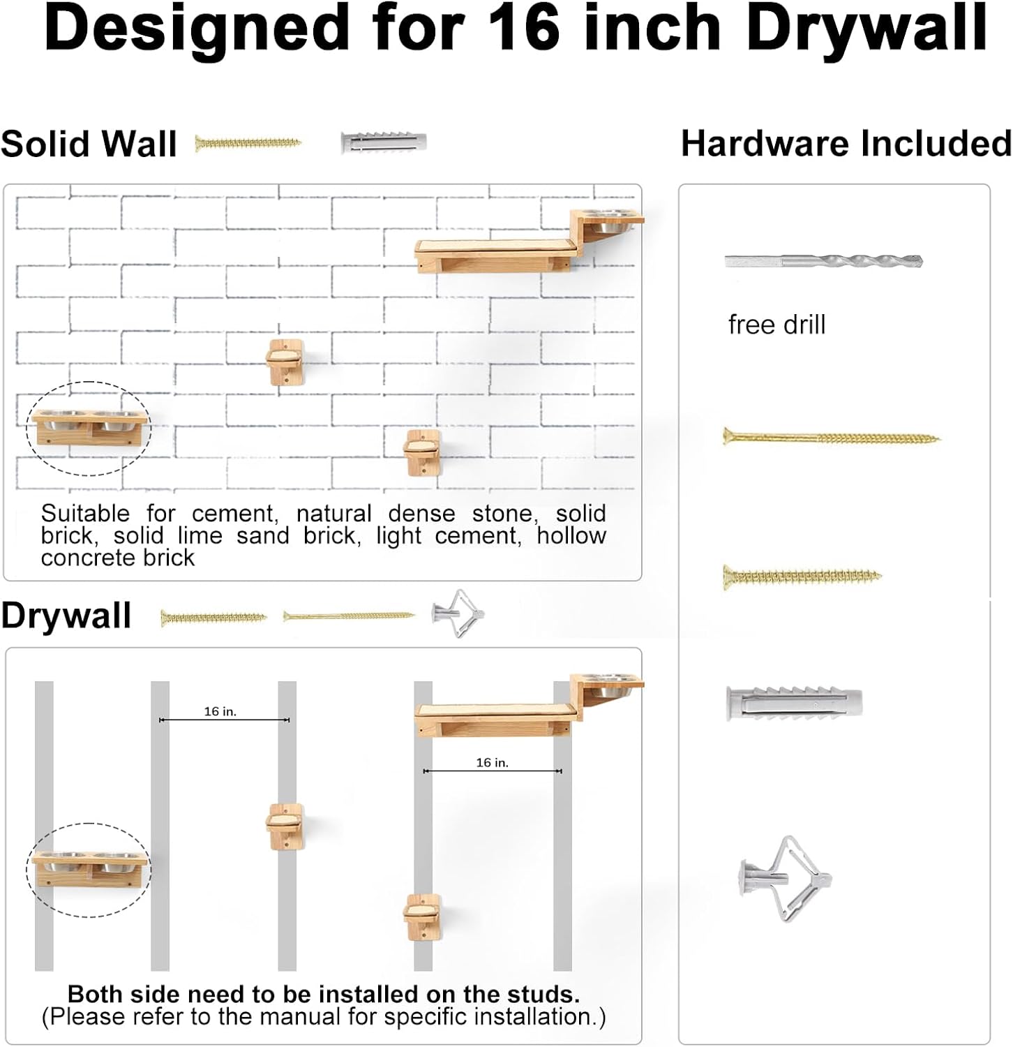 • SAFE AND STABLE - This set of cat furniture is designed for 16 inch drywall, simplify the installation and maximize stability. It passed loading test, can easily hold up to 35 lbs. The climbing structure covered with sisal mat, anti-slip for cats safe climb.