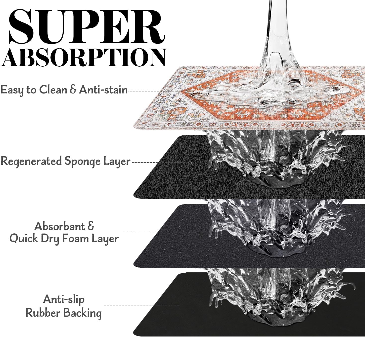 • Super Absorption: The dog mat for water bowl can absorb spilled water without leaving traces and dry quick, avoid wetting pet paws even for messy drinkers. And it does not attract pet hair like traditional silicone dog bowl mat.