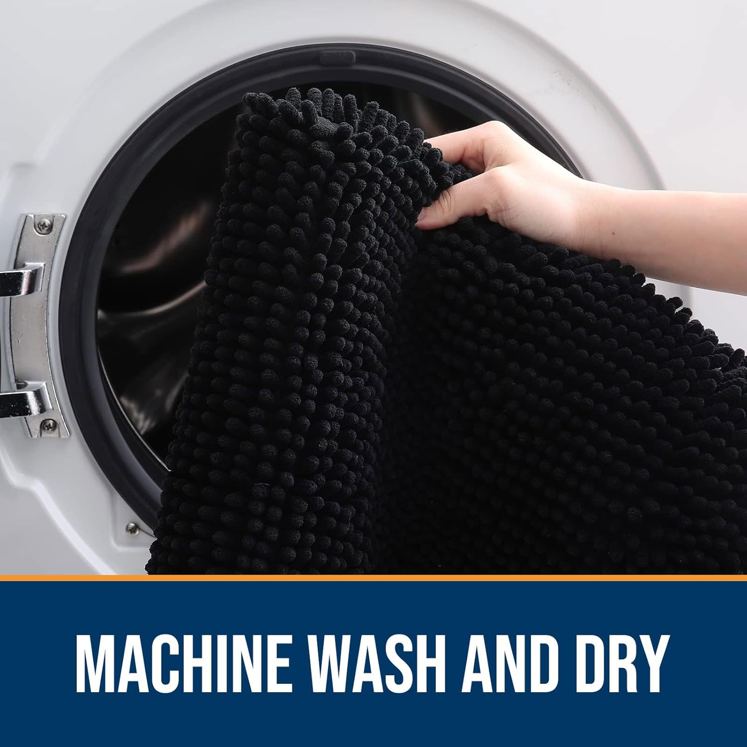 OLANLY Dog Door Mat for Muddy Paws 70x46, Absorbs Moisture and Dirt, Absorbent Non-Slip Washable Doormat, Quick Dry Chenille Mud Mat for Dogs, Entry Indoor Entryway Carpet for Inside Floor, Black