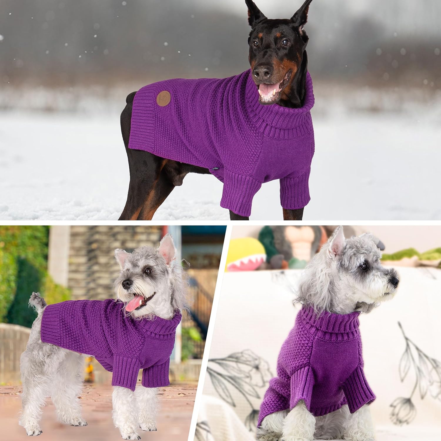 cyeollo Dog Sweater Pullover Turtleneck for Dogs, Classic Knitwear Fall Winter Cold Weather Dog Clothes Warm Pet Apparel Small Medium Large Dog Sweaters, Purple XL