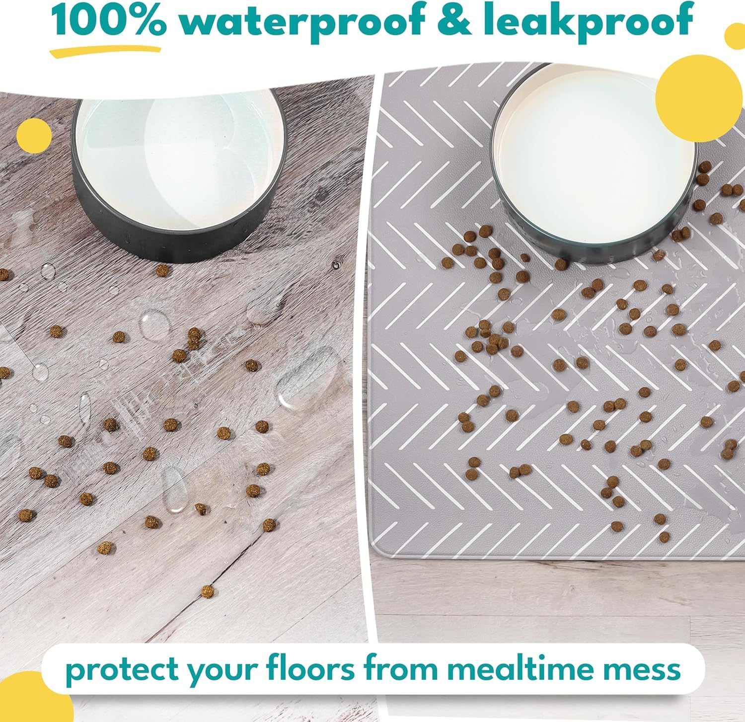 • MADE FOR PETS, DESIGNED FOR YOU – Our stylish dog food mat for bowls and water dishes blends seamlessly into your home décor. Unlike typical pet feeding mats, our non-slip, waterproof dog placemat features modern designs that fit your space, keeping floors clean while looking great.