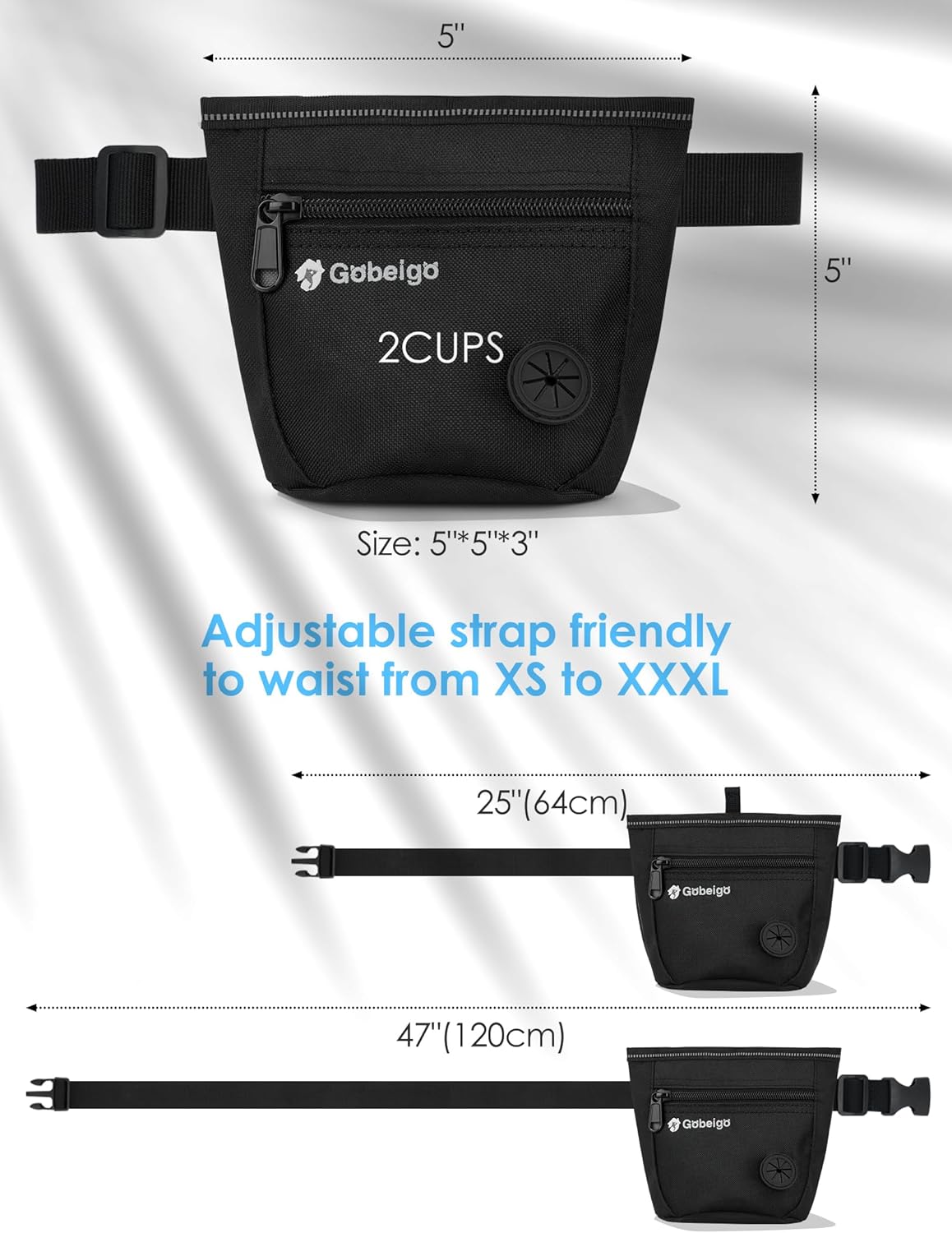 • 【Versatile wearing options】 Gobeigo dog treat bag offers two wearing modes: an adjustable waist belt (25-47 inches) catering to a wide audience, or the option to use the back metal clip independently. Simple and convenient, ensuring a comfortable fit for everyone.