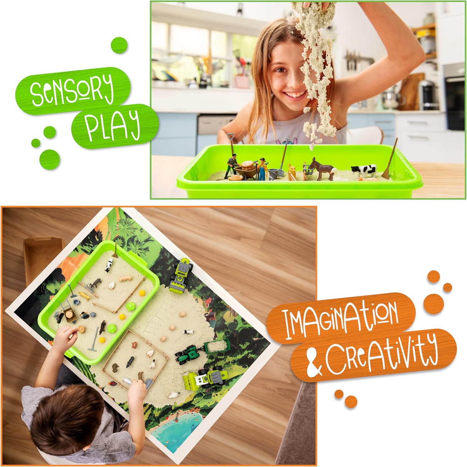 • MESS- FREE MAGIC SAND FUN: Say goodbye to messy playtimes! Our farm sensory bins come with 2.4 lbs of self-sticking, reusable magic sand that molds like a dream. The included sandbox with cover keeps everything tidy, making it a fantastic choice for toddler sensory toys and preschool toys alike. Creative construction toys have never been this clean!