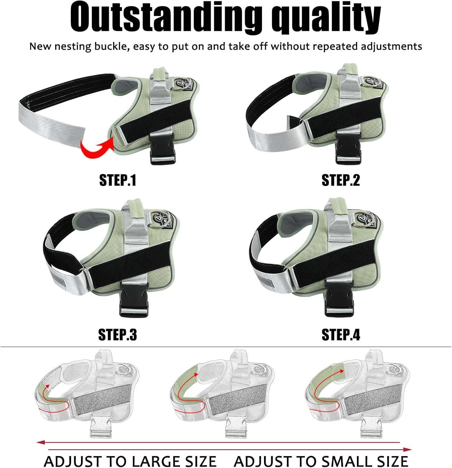• STURDY HANDLE: The adjustable dog harness with rugged nylon handle further enhances your distance from the dog and is more intimate with each other. Easy on dog harness is also the best partner for dogs and is easy to control your dog.