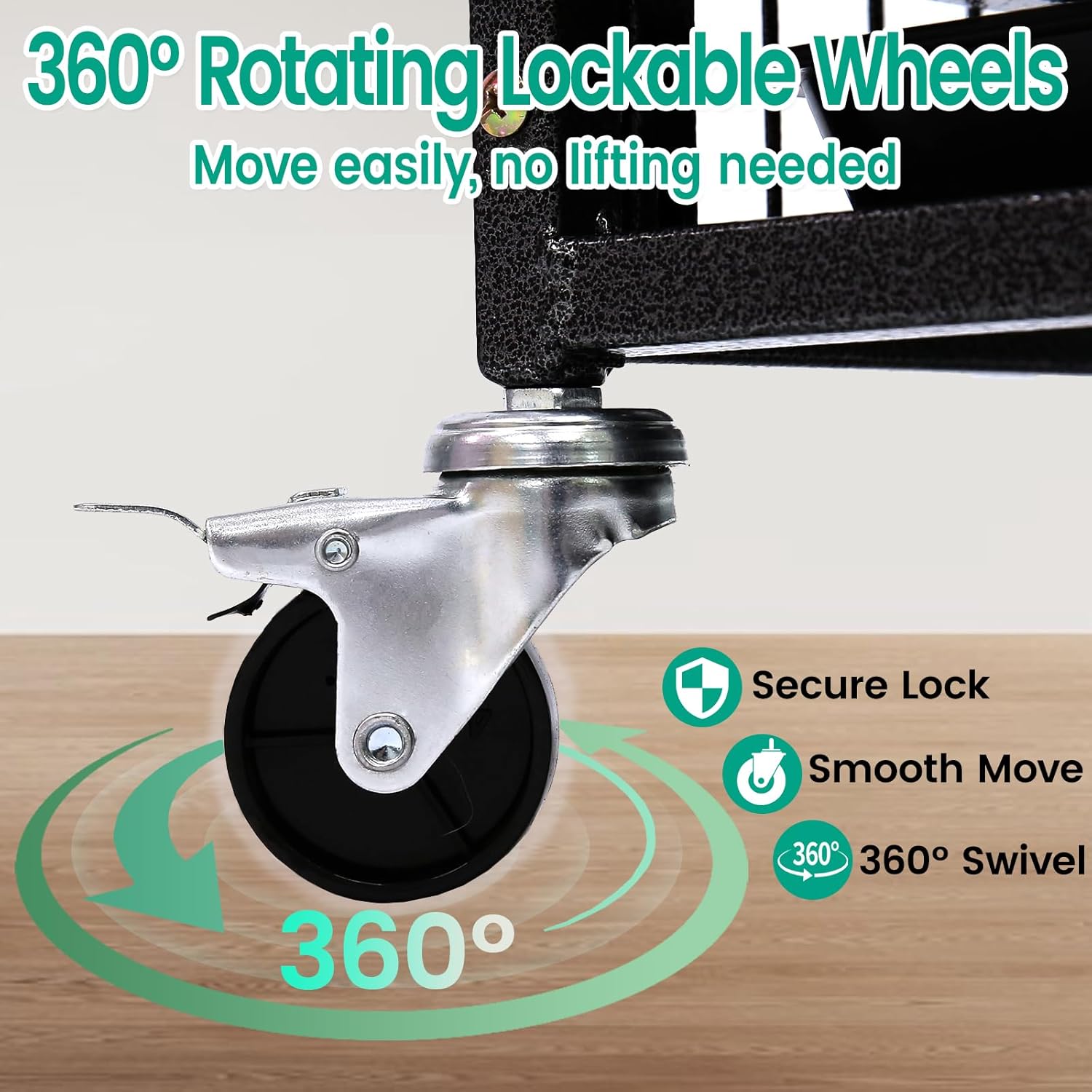 • Move with Ease: Four 360° swivel heavy-duty wheels make it easy to move the heavy duty dog kennel for cleaning, and all four wheels can be locked to keep it securely in place when needed