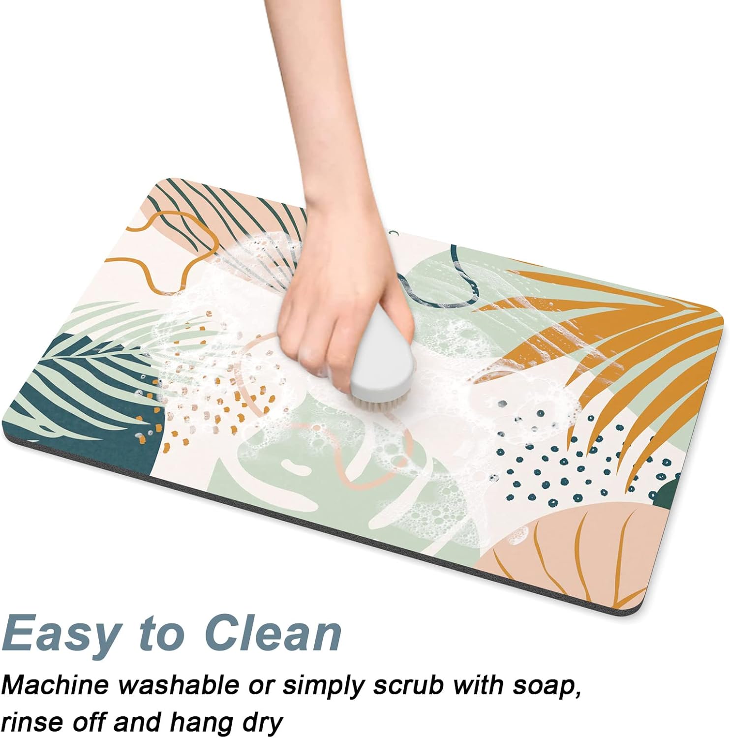 Rnivvi Dog Food Mat, 12" x 19" Boho Absorbent Dog Cat Bowl Mat for Food and Water, 3MM Anti-Slip Rubber Pet Feeding Rug Protect Floors, Puppy Placemat for Feeding & Watering Supplies, Tropical Leaves