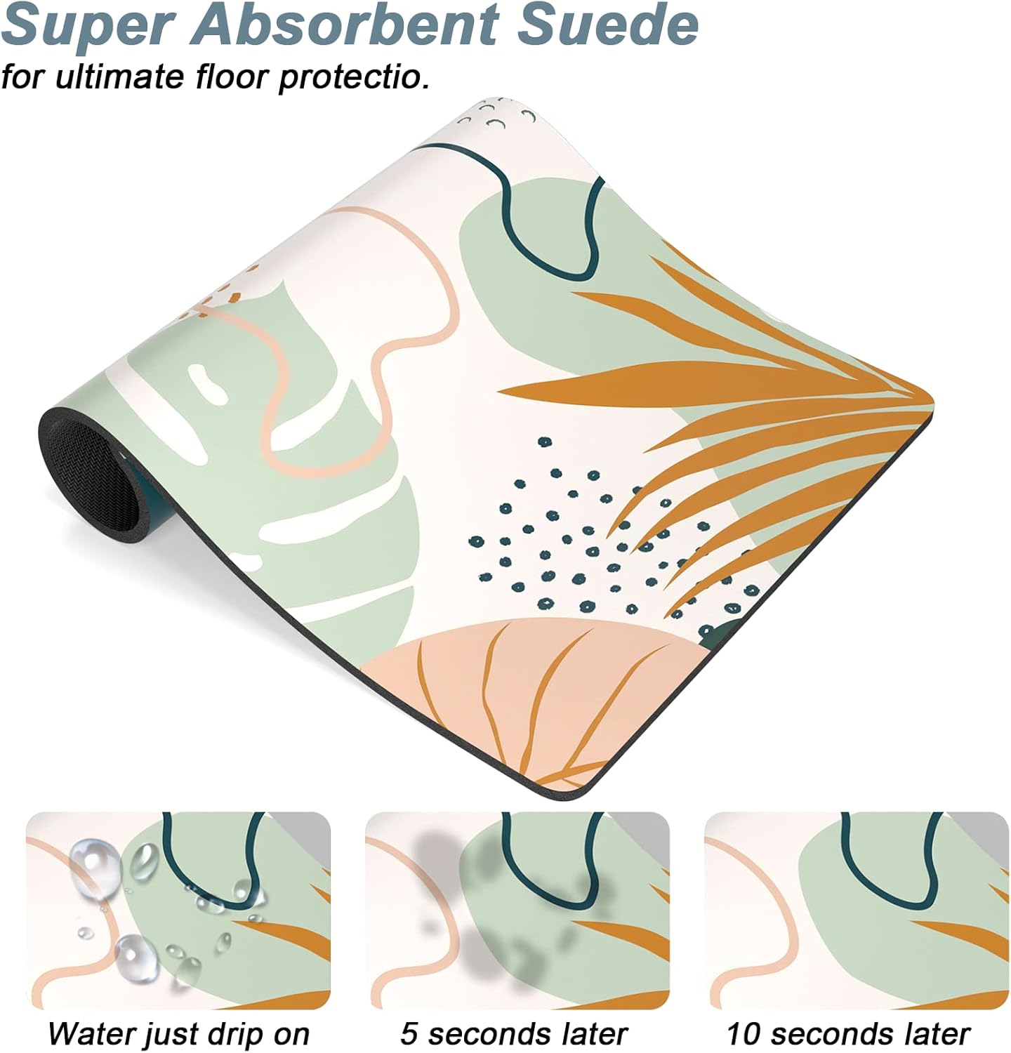 • Super Absorbent Placemat: Aesthetic dog food mat surface is made of absorbent suede with soft, anti-fray which can quickly absorb liquid and wet food stains to prevent prevents food & water from spilling onto floor