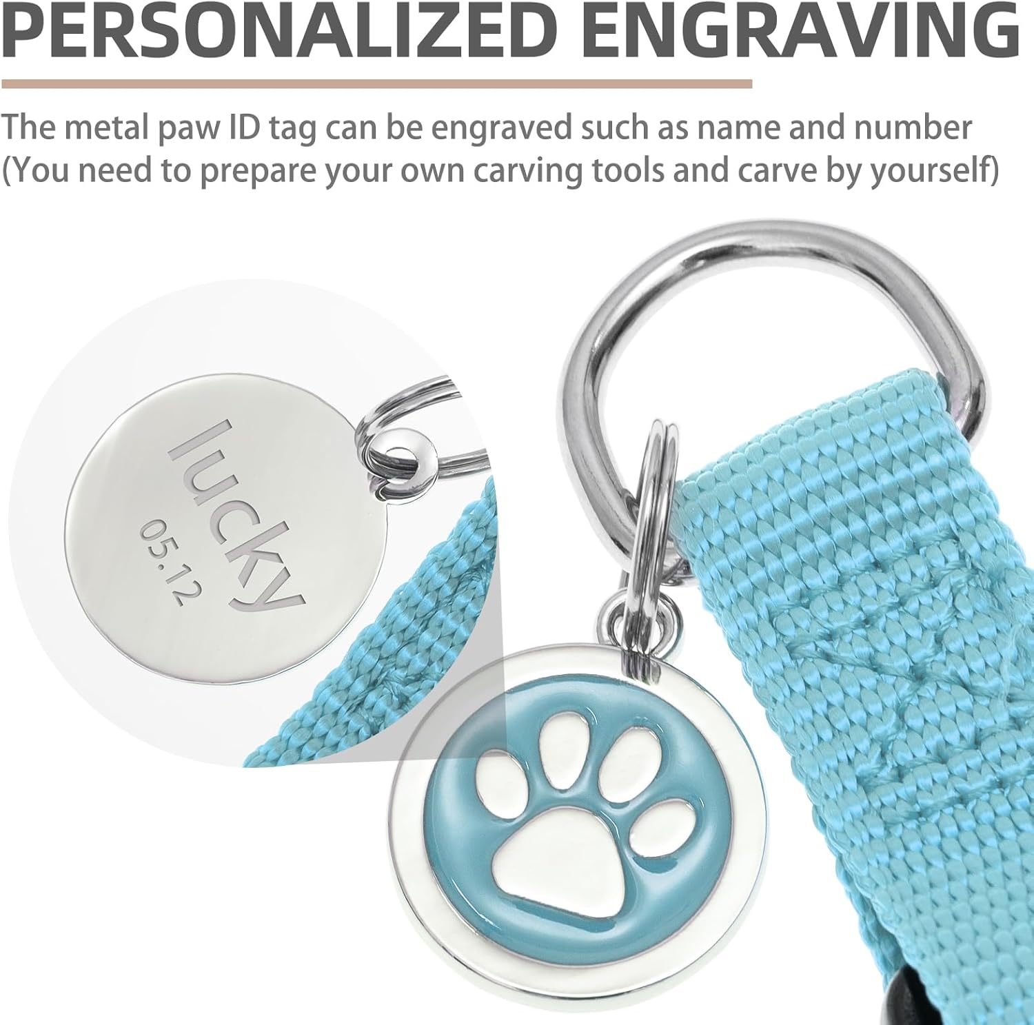 • [Cute ID Tag for DIY] - Each harness is equipped with a metal ID tag, and the front is a cute paw pattern, while on the back, you can engrave whatever you want, such as the dog's name and so on. It does not corrode as easily as wooden labels and is durable. You can also remove it when washing the harness.