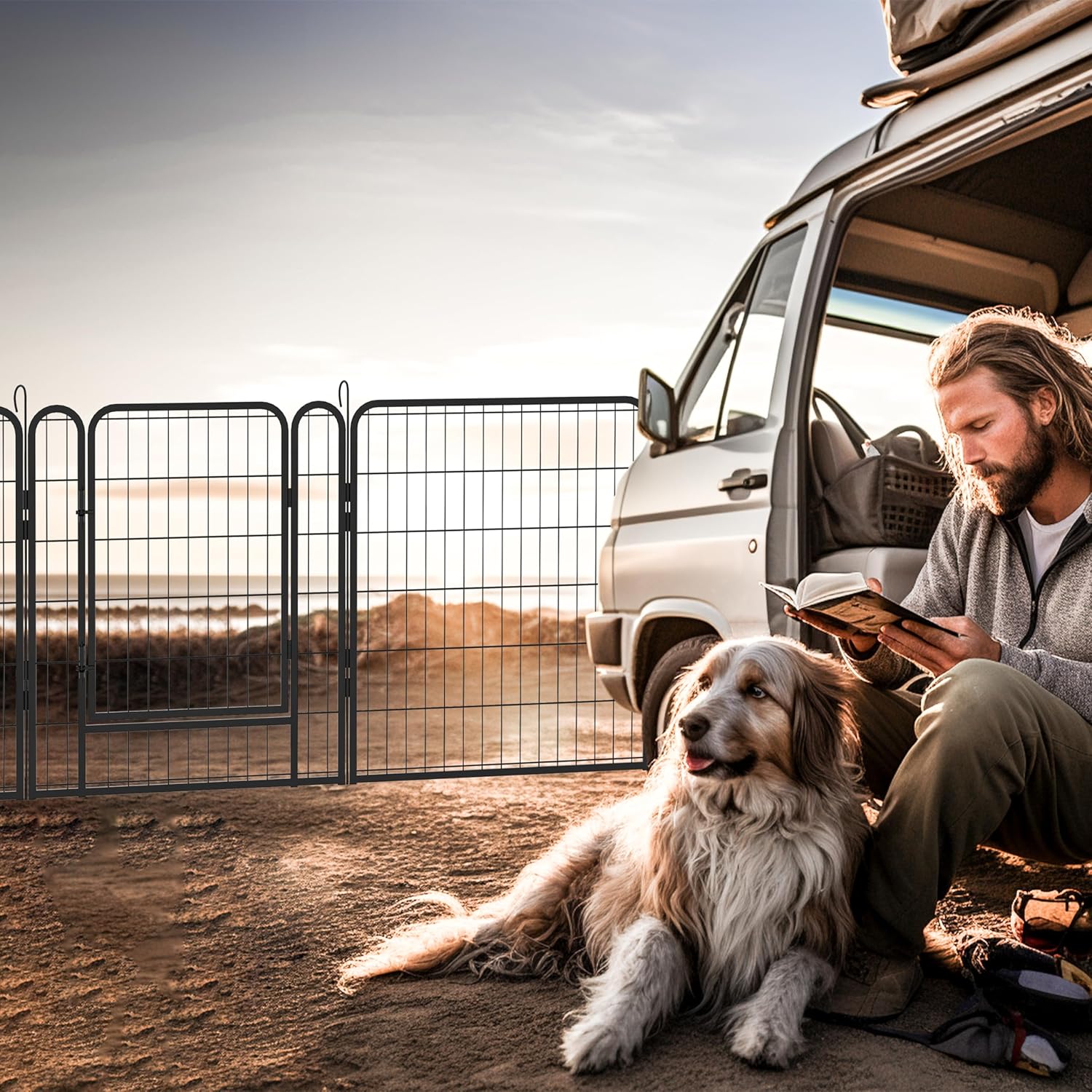 Dog Playpen, Outdoor Dog Fence, 16 Panels, 32" H Dog Pen for Medium/Small Dogs, Heavy Duty Metal Pet Fence with Gate, Portable Dog Fence for RV Camping and Yard (Black)