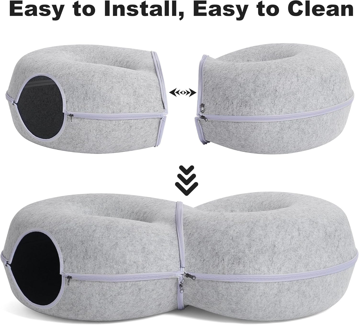 • Easy to Store And Clean: The tunnel cat bed is installed and disassembled with zippers, which is easy to operate and carry. In daily life, use a hair scraper and wet wipes to simply clean it up to make it tidy and clean