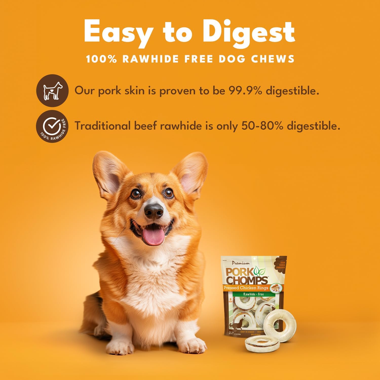 Pork Chomps Pressed Pork Skin Dog Chews, 2.5-inch Rings, Real Chicken, 8 Count (Pack of 2)