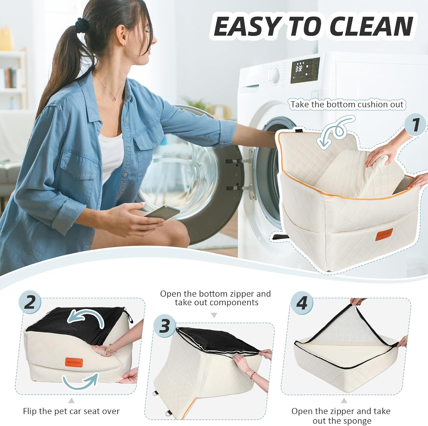 • Multi-functional Use: The small dog car seat is not only suitable for vehicles, but can also be used as a dog bed at home, outdoors or in a tent, providing your dog with a comfortable resting space anwhere. It has a removable and washable cover, simply open the zipper and take out the sponge to clean the cover. Please note that the inner sponge is not washable