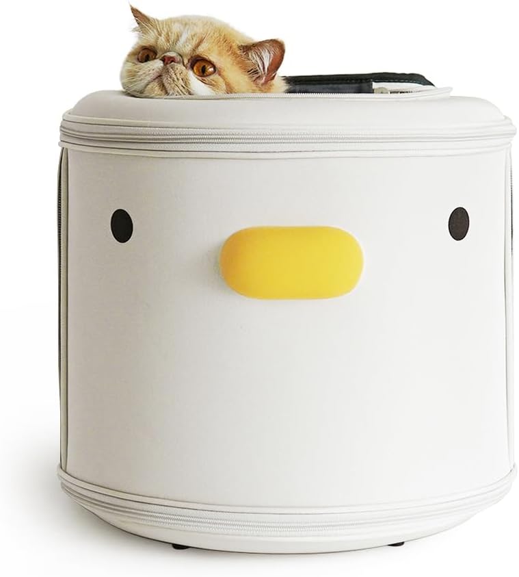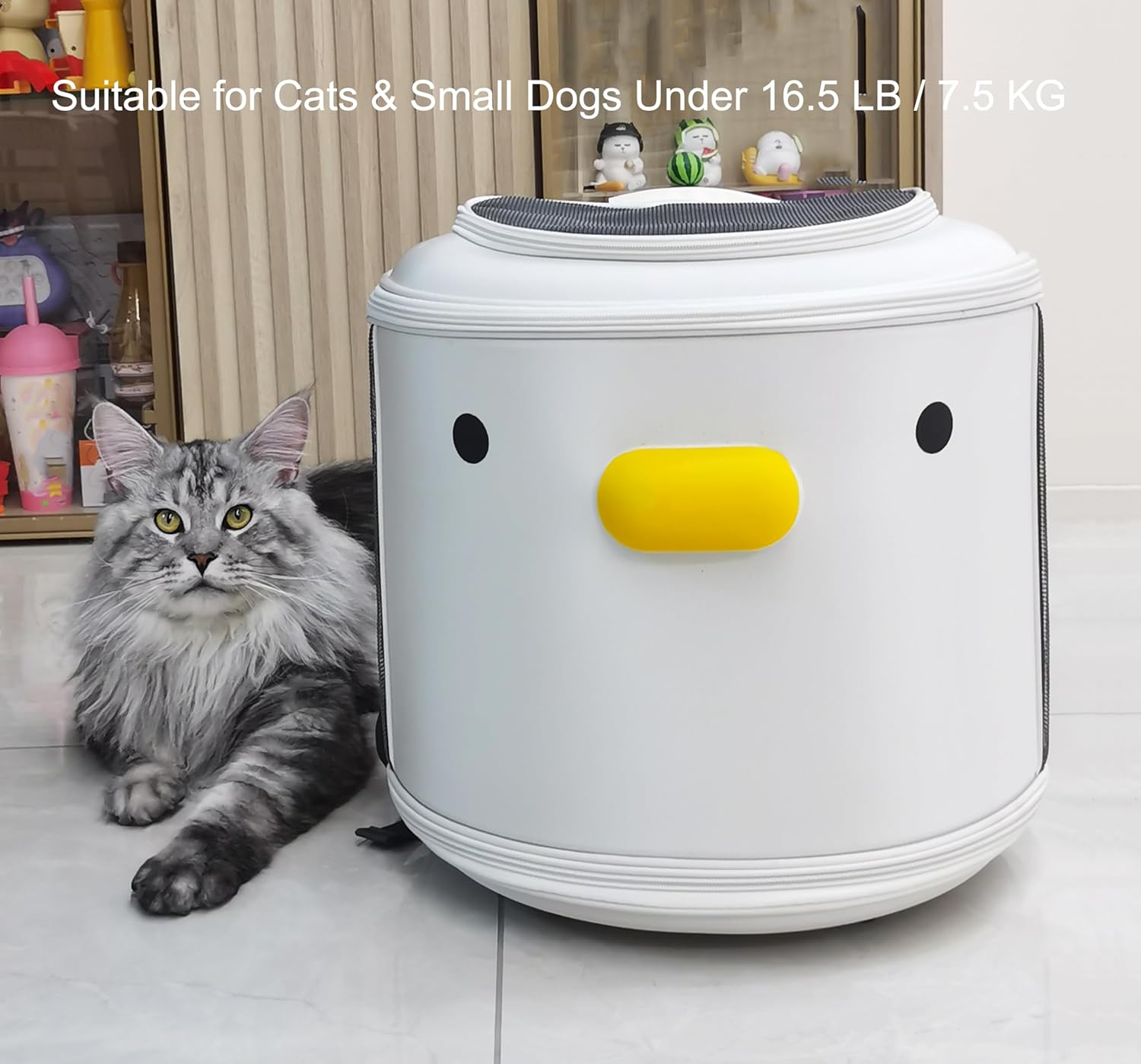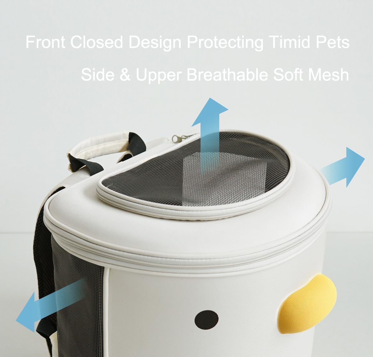 • FRONT ENCLOSED DESIGN: The front of the backpack features a cute duck shape and a closed design, effectively protecting timid pets & reducing pet anxiety. The side and top are equipped with large breathable nets, ensuring sufficient air for cats & small dogs.