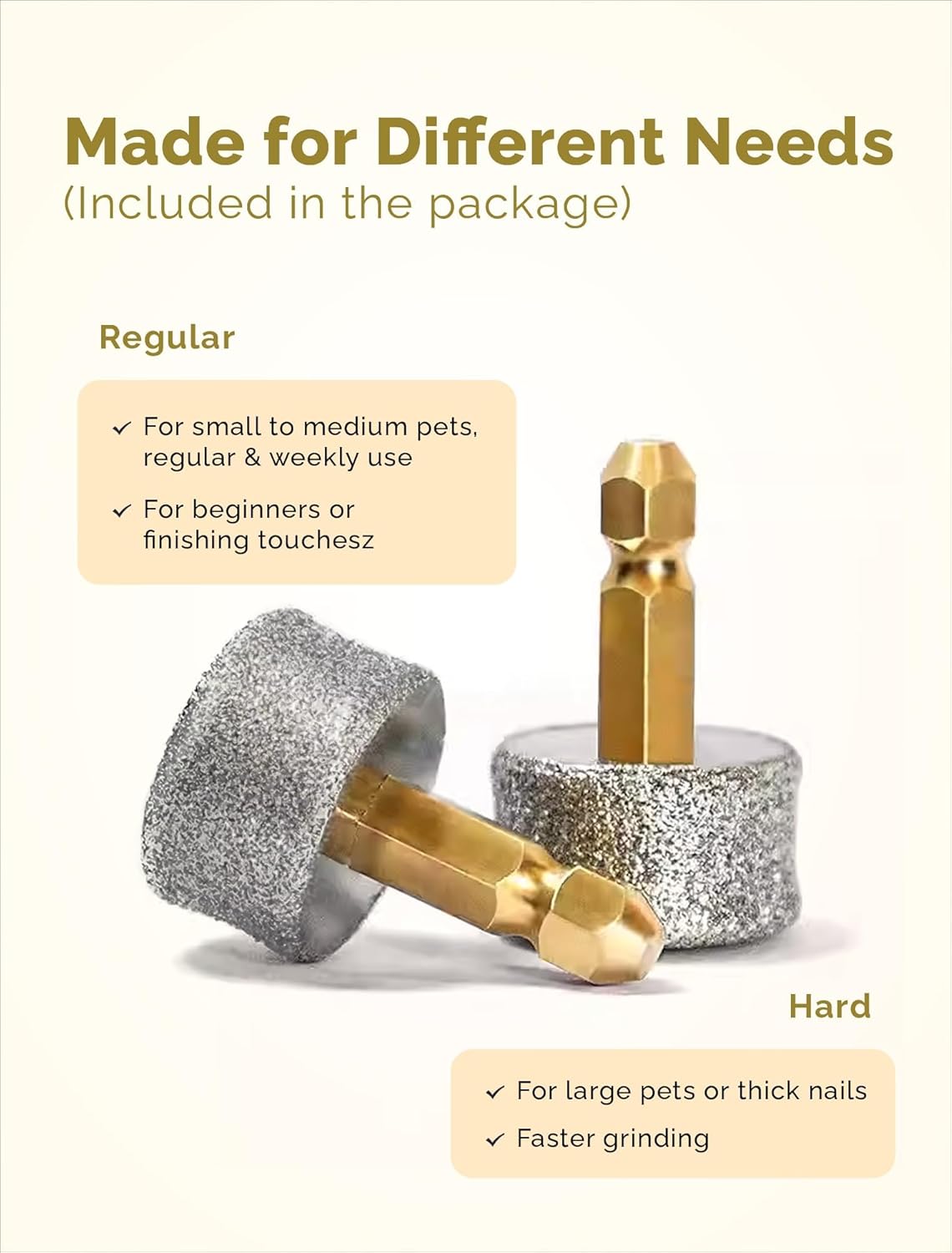 • Upgraded Dust Cap & Reliable Diamond Bit: The included removable dust cap allows you to easily collect and dispose of nail dust and debris while groom, and protects your pet's eyes from shavings. Pedgogo dog nail grinder is made of advanced diamond bit to deliver powerful and quick grinding experience. Two extra diamond bits are included for easy replacement.