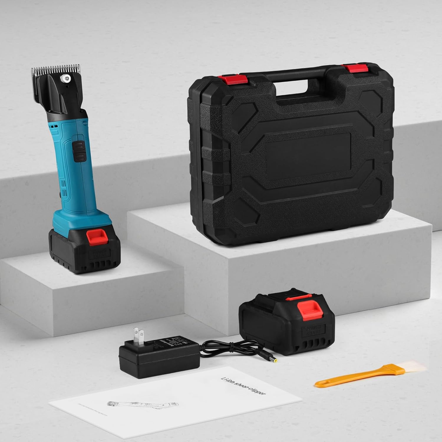 • 🐴【What can you get?】horse clippers set contains 1 * horse clippers,1 * packing box, 2 * 2500mah Backup Battery, 1 * battery charging adapter, 1 * oil bottle(not include lubricating oil), 1 * cleaning brush, 1 * manual