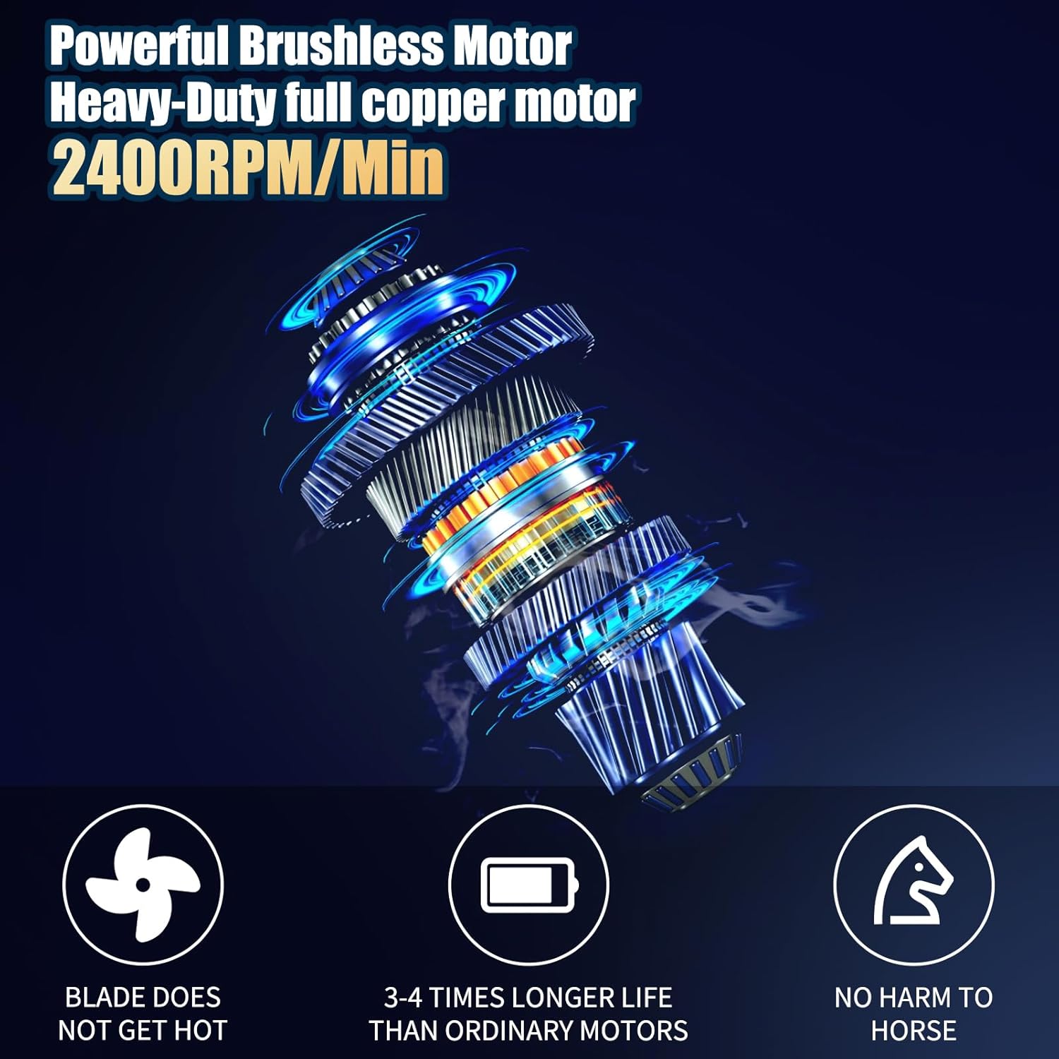 • 🐴【4H Long-Lasting Battery Life】The biggest highlight of this cordless horse clipper is long-lasting, specially equipped with a spare battery, which means no need to worry about power outage when working outdoors.With 2 batteries, it can work continuously for up to 4 hours, which is enough to deal with shaving 5 horses easily.
