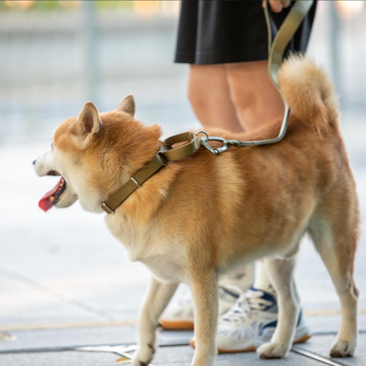 • 1. Martingale style collar without quick release buckle. This heavy duty collar slips easily over the head and gently tightens when pulled to anti escape. The limited closure ensures the collar is not too tight, providing gentle control during walks or training.