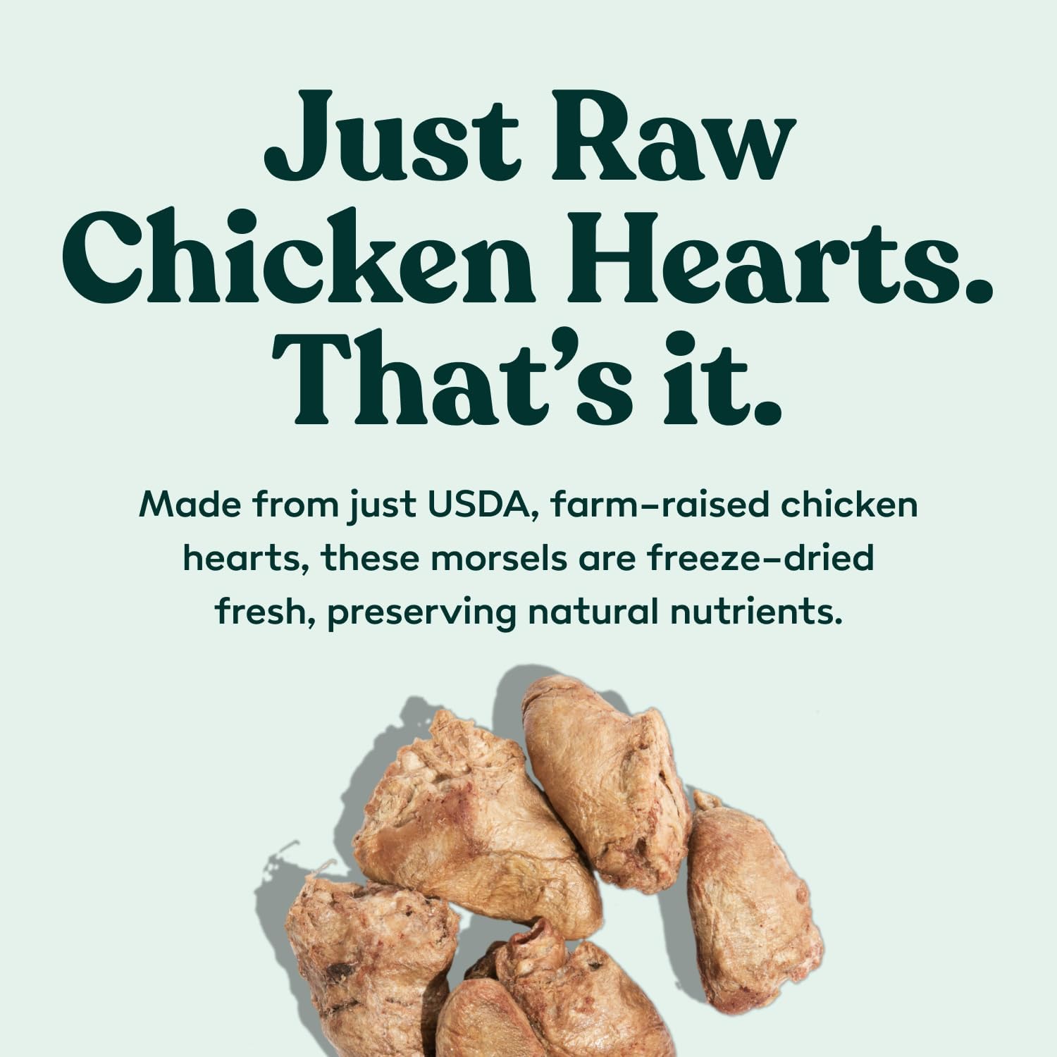 • SINGLE INGREDIENT DOG TREATS: Healthy dog treats made from humanely sourced, farm-raised, USDA-rated chicken hearts – that’s it! Our freeze dried chicken hearts are nutrient-rich to help dogs satisfy their instinctual meat cravings in a healthy way.