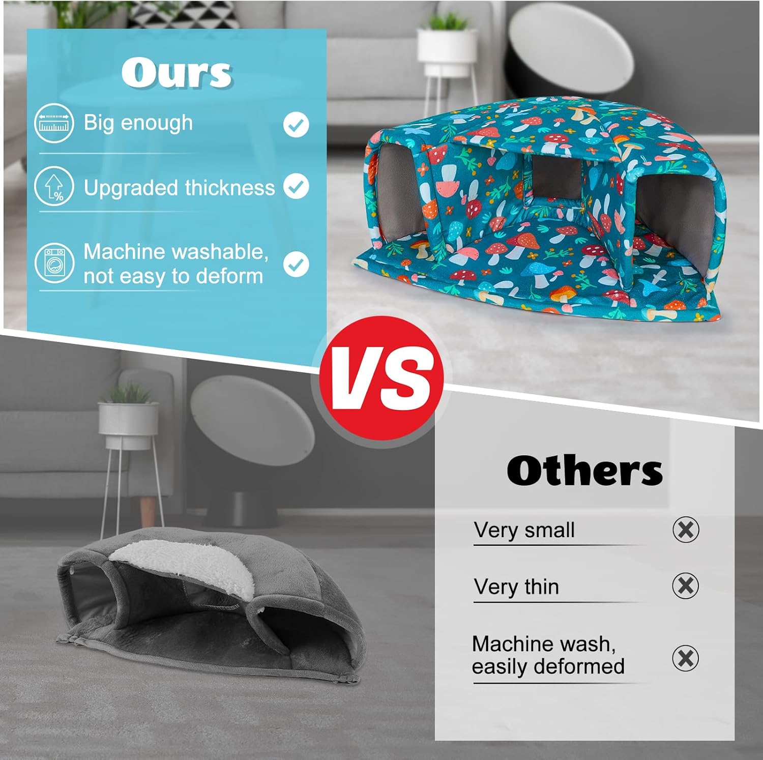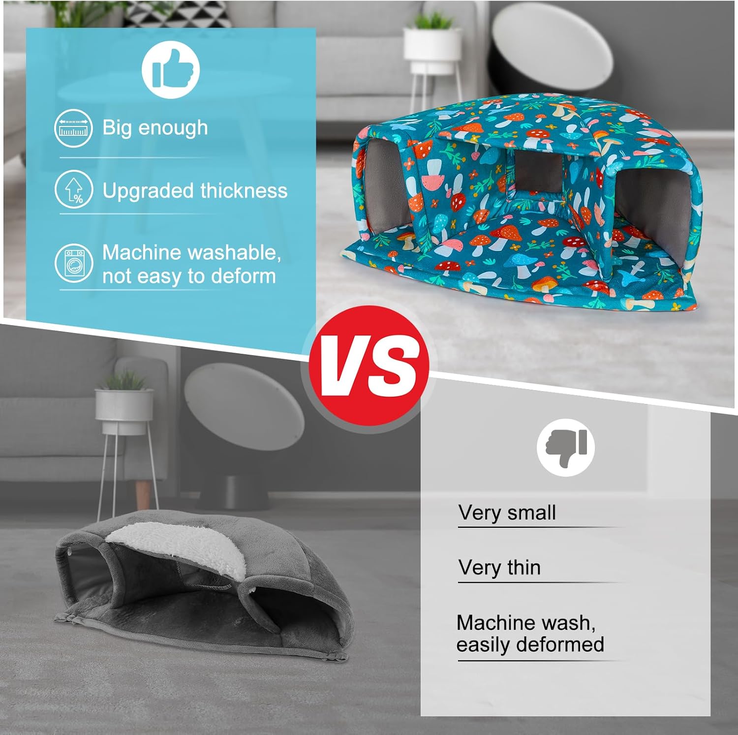 • Machine Washable: The guinea pig hideout is made of short plush and high-density elastic sponge; Not only is it very soft to the touch, but also more comfortable and warm, the fabric is thick enough to hold its shape and stay upright after many washes