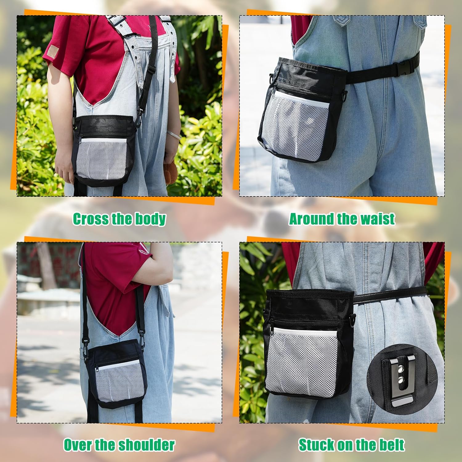 • Multiple Ways to Wear: There are several methods to wear a dog training treat pouch. You can tie it around your waist with an adjustable belt, slung it over your shoulder, or attach it to your belt with a metal belt clip
