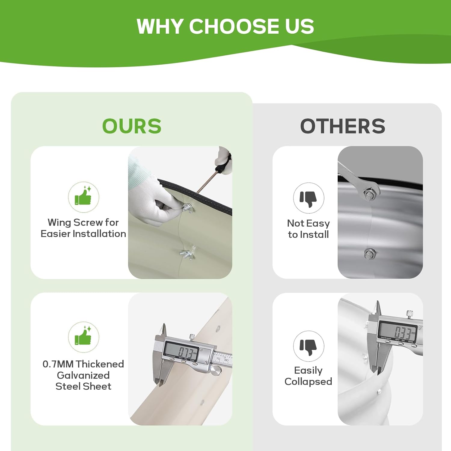 • 【 Easy Assembly 】Our metal raised garden bed is simple and easy to install. According to the detailed instructions and installation tools we provide, you can easily assemble your garden box and start planting with just a few simple steps and little time.