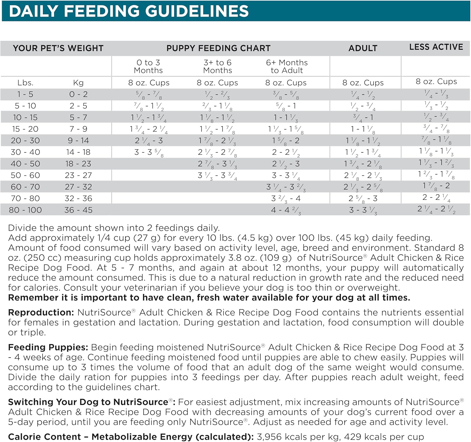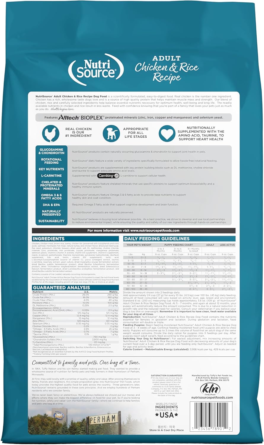• As a member of our grain inclusive series, NutriSource Chicken and Rice Dry Dog Food is formulated to meet AAFCO guidelines for all lifestages