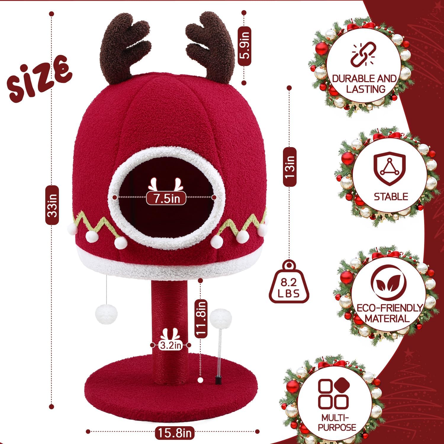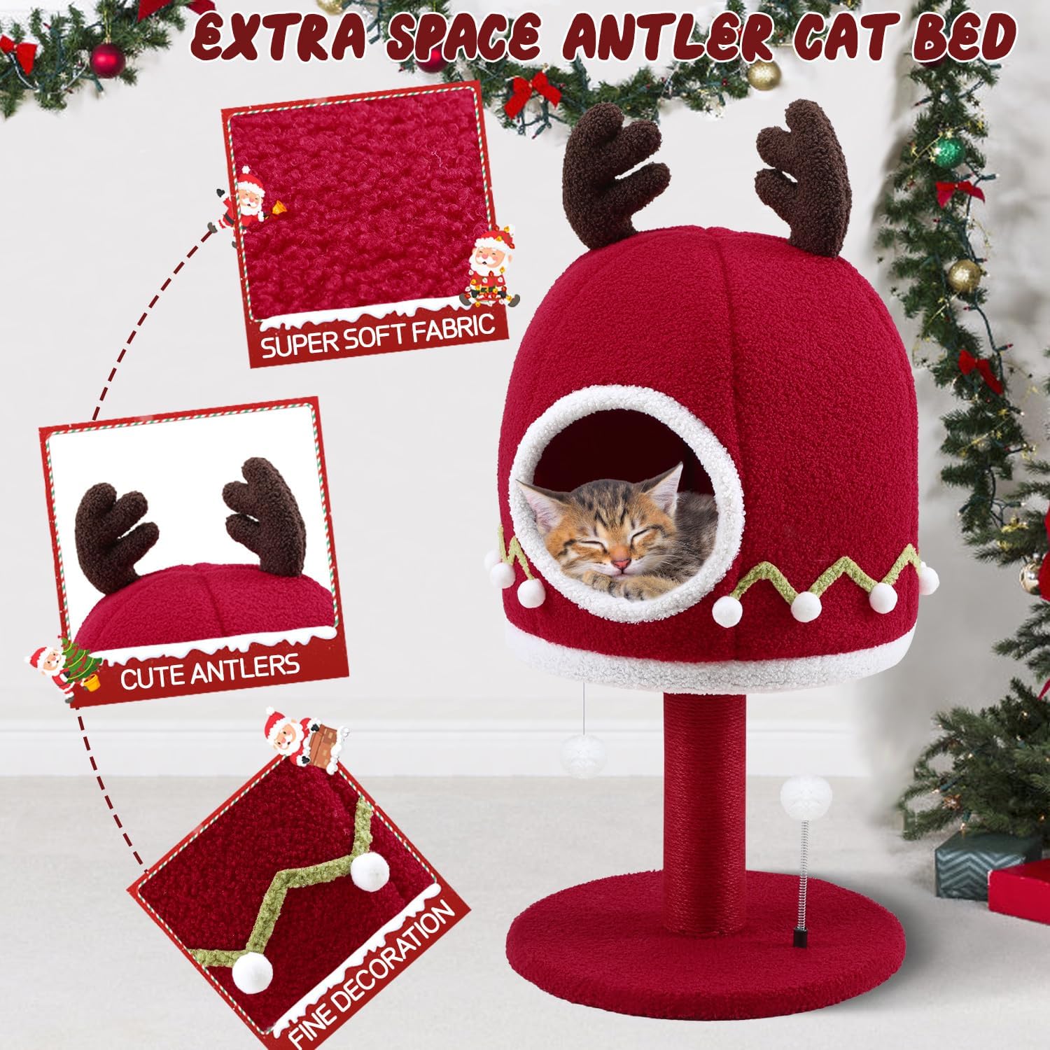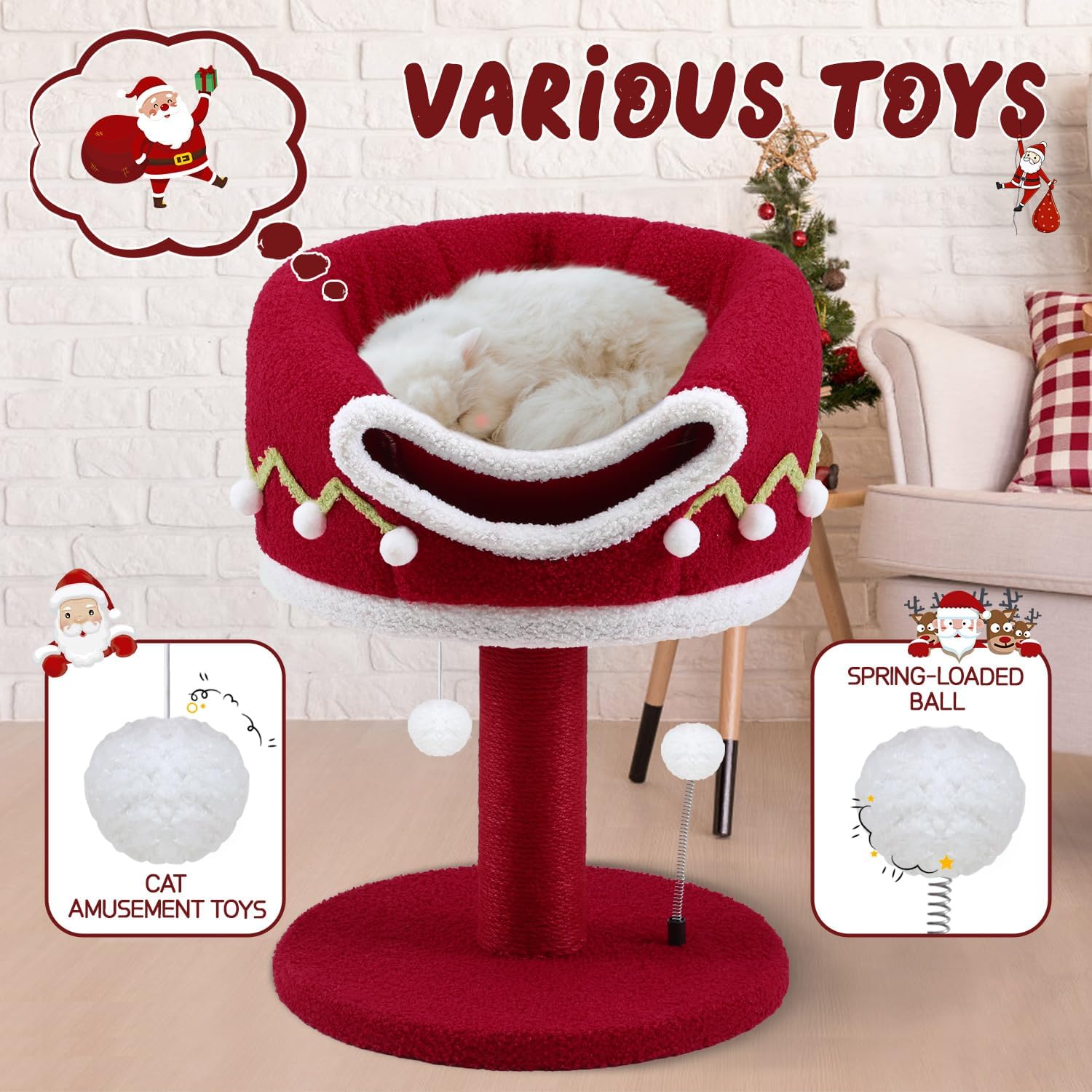 • CHRISTMAS CAT TOWER - We designed this Christmas theme cat tower specifically for cats, the bright red color is striking, it is the most suitable Christmas gift for cats. It's an excellent cat activity center, where you can meet your cat's multiple needs of scratching, climbing, moving and relaxing. And the modern design is suitable for most homes and can be placed anywhere in your home as a decoration.