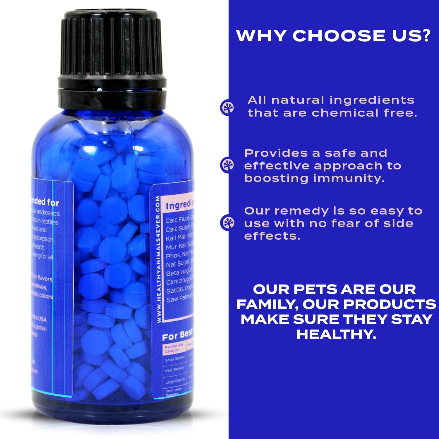 • Nutrient-Dense Formula for Complete Support: Featuring a blend of essential minerals like calcium fluor, calcium phosphate, and silicea 6x, along with natural plant extracts, this formula provides a rich source of nutrition. Designed to supplement a balanced diet, it supports overall health and vitality in reptiles.