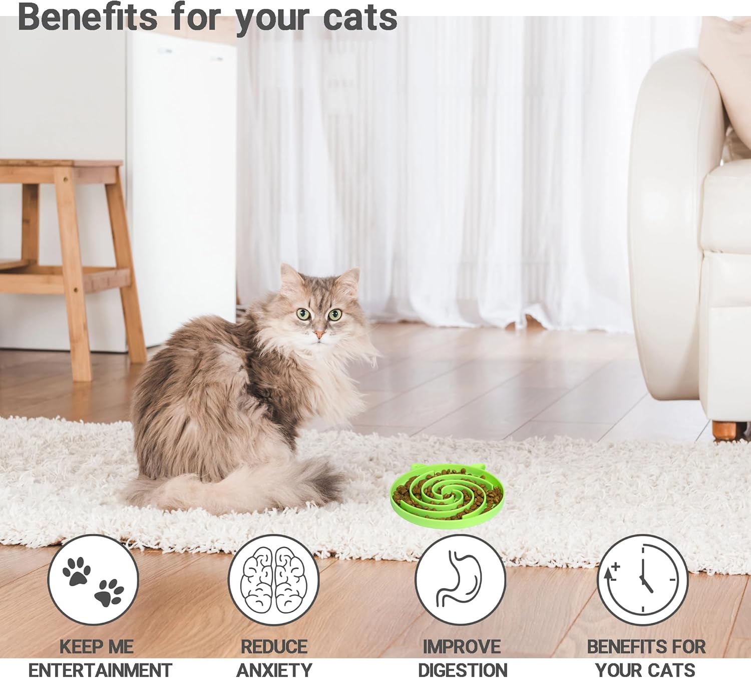 • Fun Slow Feed Bowl: The spiral pattern in our feeding bowl makes cats work for their food, as they need to navigate the curved channels to reach their meal. This design naturally slows down their eating pace, promoting better digestion while providing a more relaxed dining experience