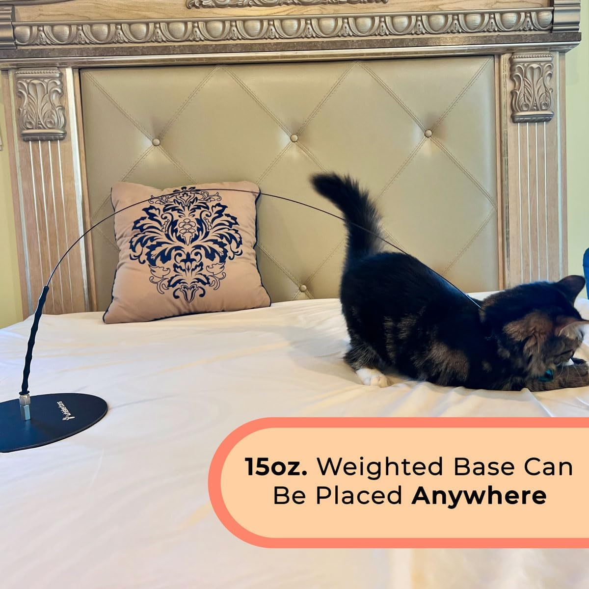 • DURABLE & ADAPTABLE: The interactive bird cat toy includes 2 highly flexible rods, a strong suction cup that can be attached horizontally or vertically to any smooth, clean surface, and a heavy-duty weighted base for carpets & furniture. The best part is that it requires no interaction from you, and your cat can play whenever they want.