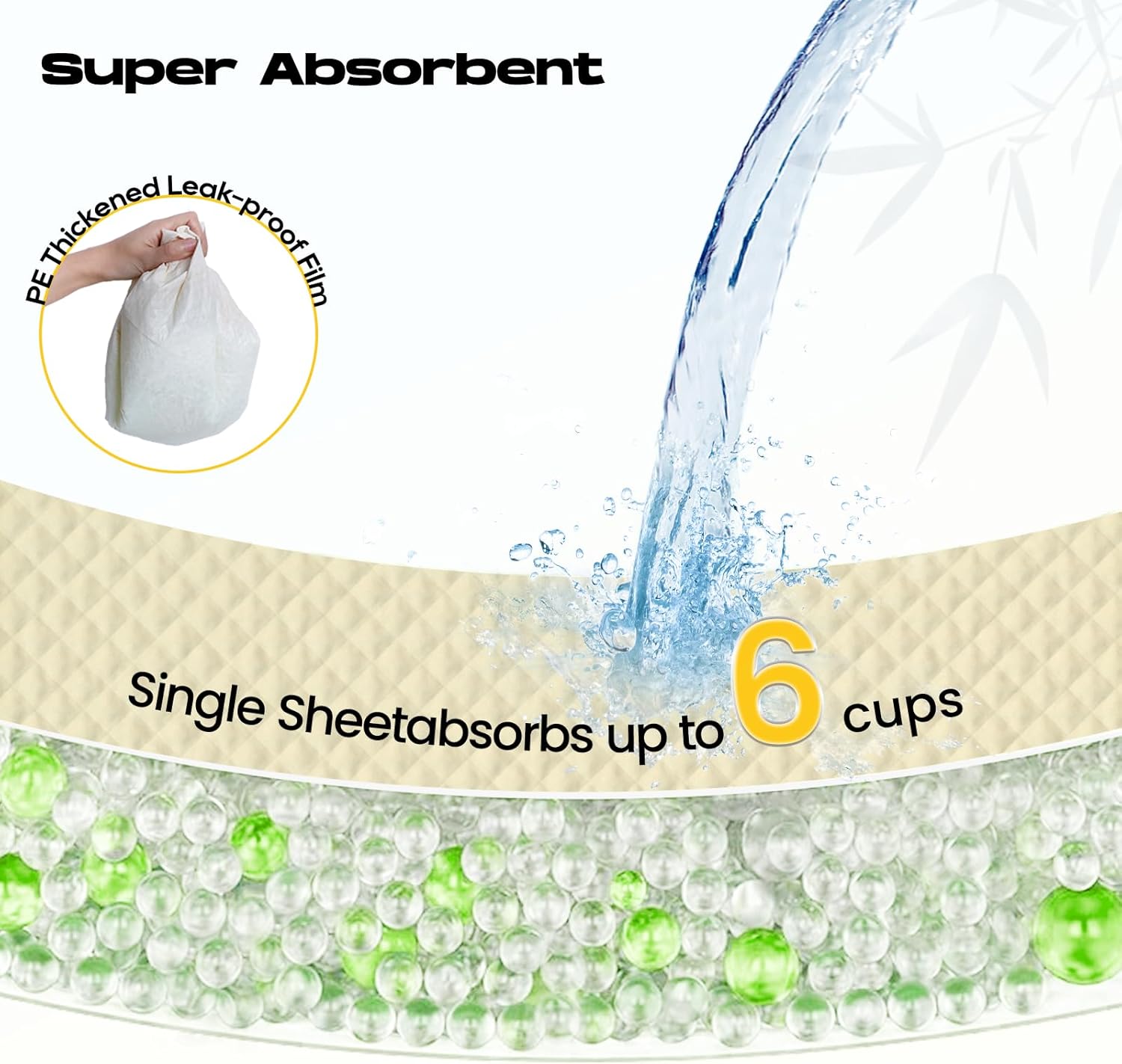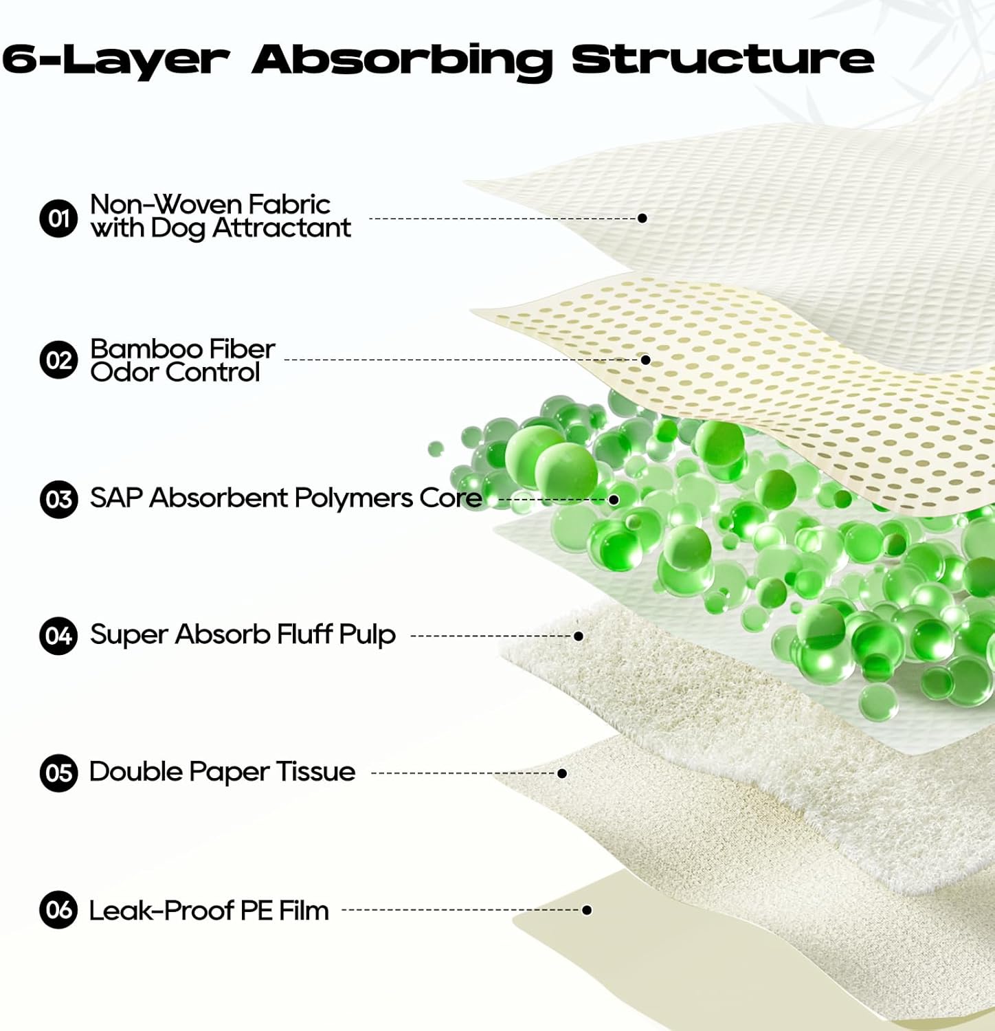 • 🦴【Super Absorbent & Quick Drying】6 layers of protection designed with polymers for super absorbency,converting liquid to gel in seconds for easy cleanup and staying dry.The non-woven fabric of the diaper pads accelerates liquid absorption and prevents reverse osmosis,keeping the surface dry quickly