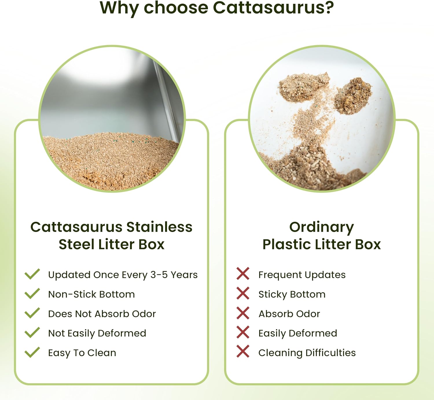 Cattasaurus Stainless Steel XL Cat Litter Box with Lid for Large Cats Up to 40lbs, Removable Kitty Litter Box Enclosure, Top Entry Litter Box, Durable Scoop & Pedal (Stainless Steel - Only Base)