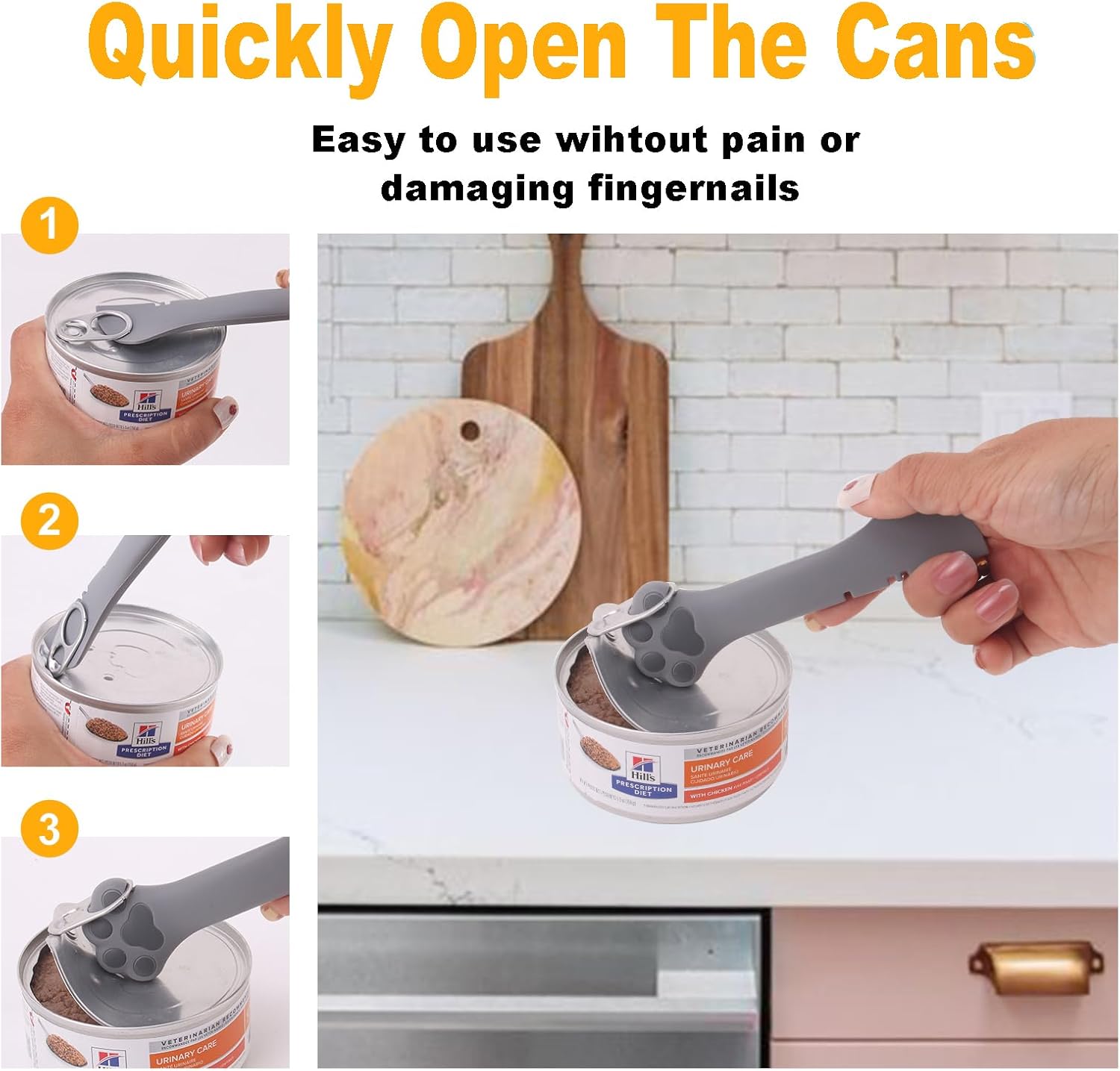 • Easy Opening: The multi-function cat can opener make opening cans a breeze. Don't worry about nail cracking or damage anymore