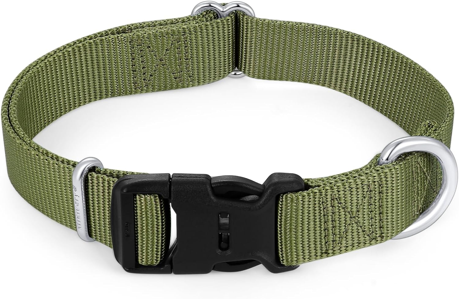 Mikivery Nylon Dog Collar with Quick Release Buckle Soft Adjustable Sturdy for Small Medium Large Dogs Military Green,L