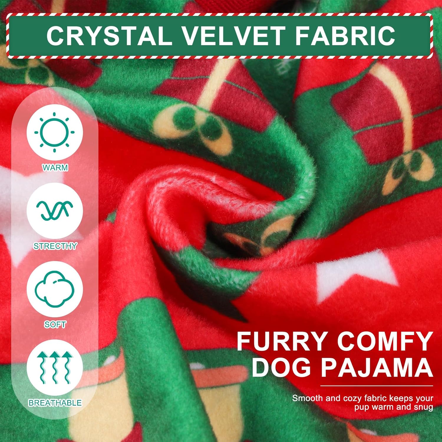• High-quality Material: Our dog pajama use premium crystal velvet fabric that is soft, comfortable, and non-irritating, giving your pet the ultimate comfort. At the same time, this fabric has excellent insulation properties, effectively blocking out cold air and providing a warm environment for your pet