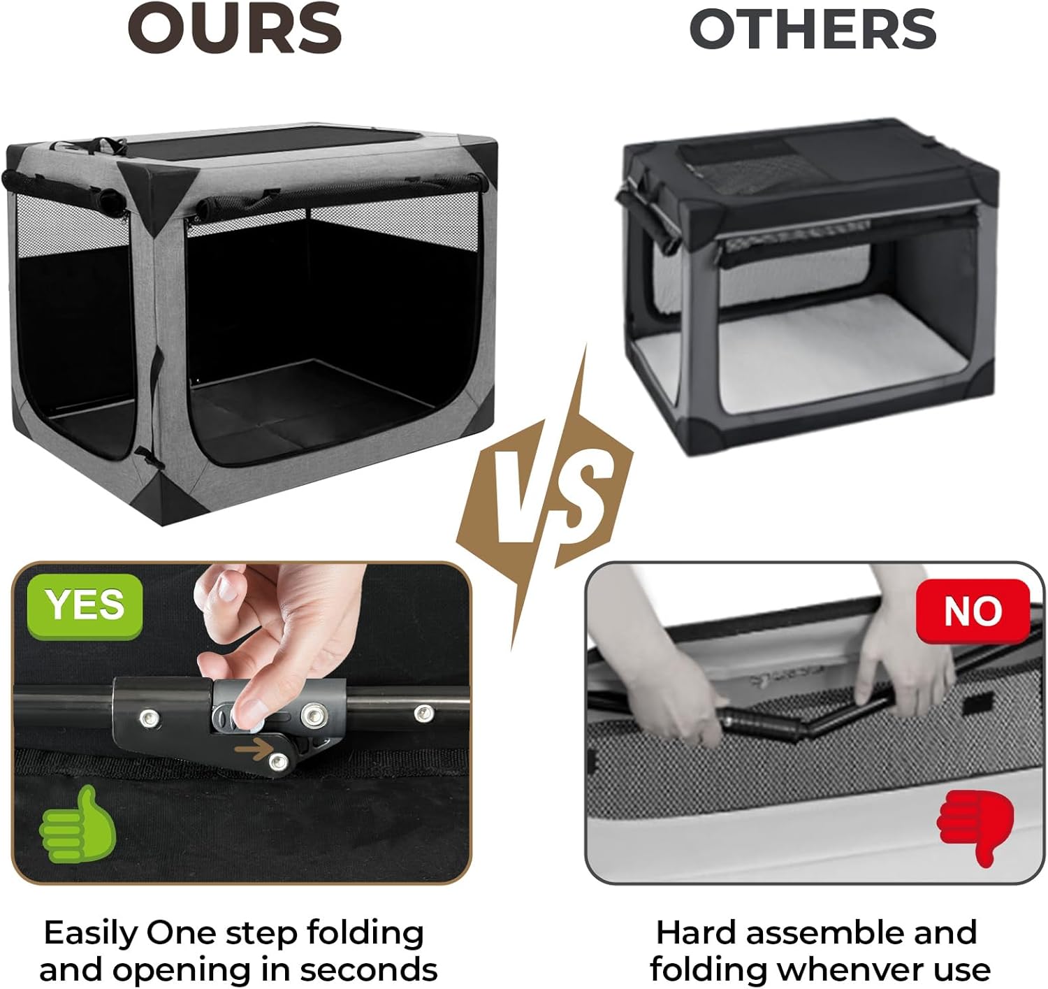 • 360° Airflow + Chew-Proof Security "Reinforced steel-frame corners and bite-resistant 620D Oxford fabric make this durable dog crate withstand rough play. Double-layer mesh panels (tested by 50 hyperactive dogs!) keep your soft dog crate ventilated, while the machine-washable orthopedic pad reduces travel anxiety."