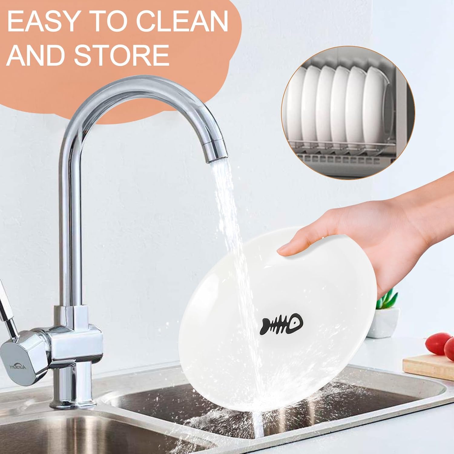 • 🐾【6 Cute Cat Bowls Set to Meet Various Needs of Multi-Cat Families】The cat food bowls with fishbone patterns make the food look more delicious, easier to attract the cat's attention and increase the cat's appetite. The 6 cat bowls can easily meet the various needs of families with multiple cats and other pets: puppies, rabbits, hamsters. The kitten food bowl can also be used to hold different foods: wet and dry food, cat snacks, kitten milk, water.
